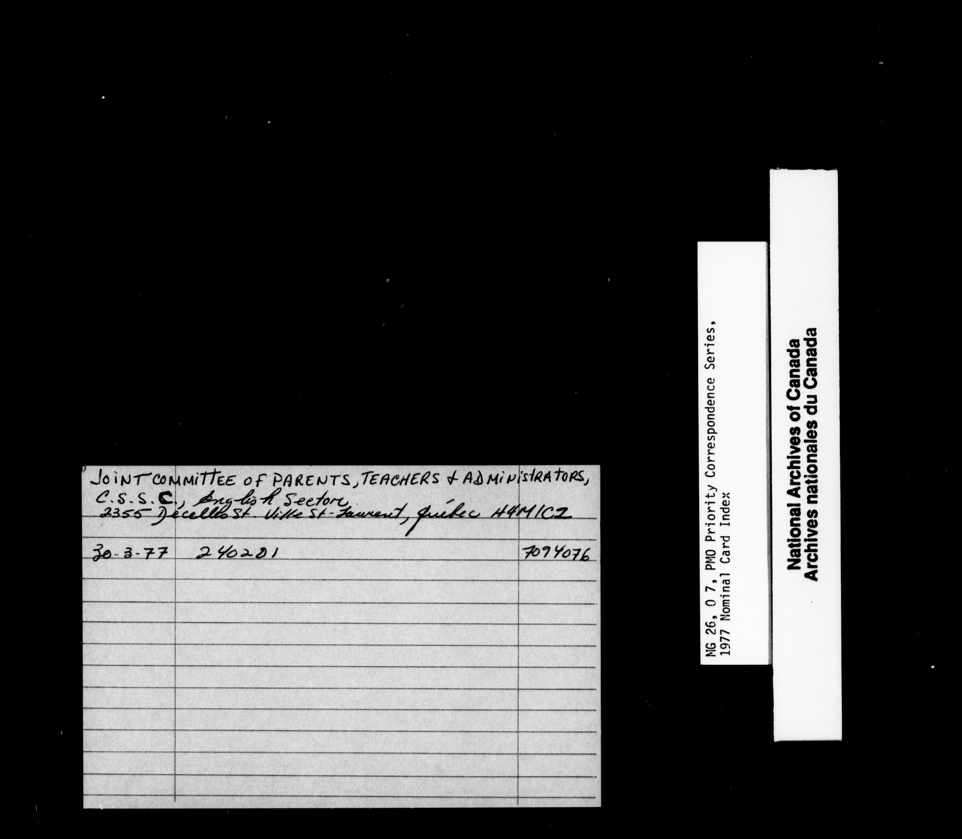 Pierre Elliott Trudeau priority correspondence 1976-1978 : Nominal Card Index - 1843