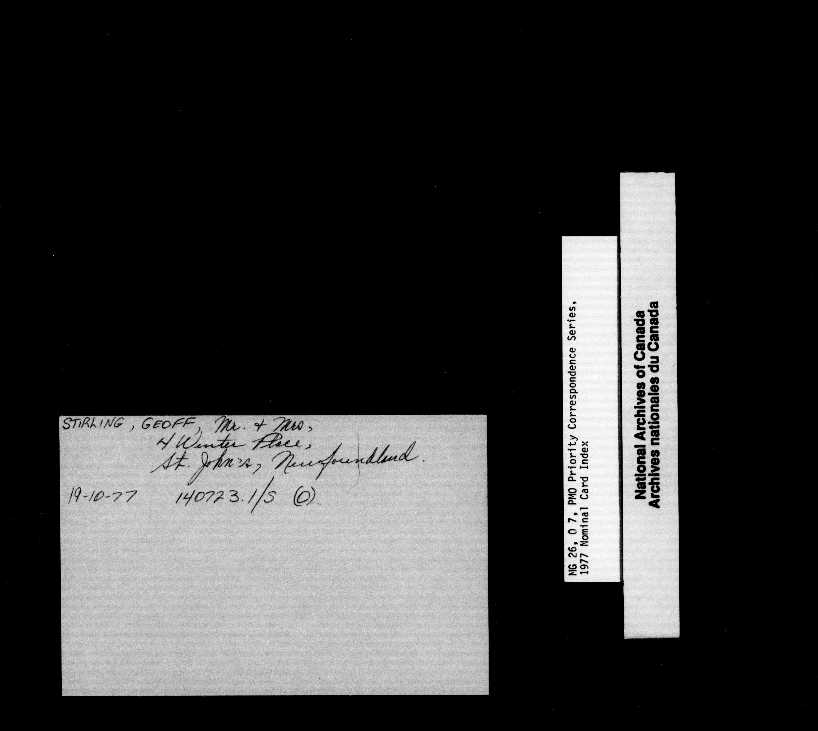 Pierre Elliott Trudeau priority correspondence 1976-1978 : Nominal Card Index - 1847