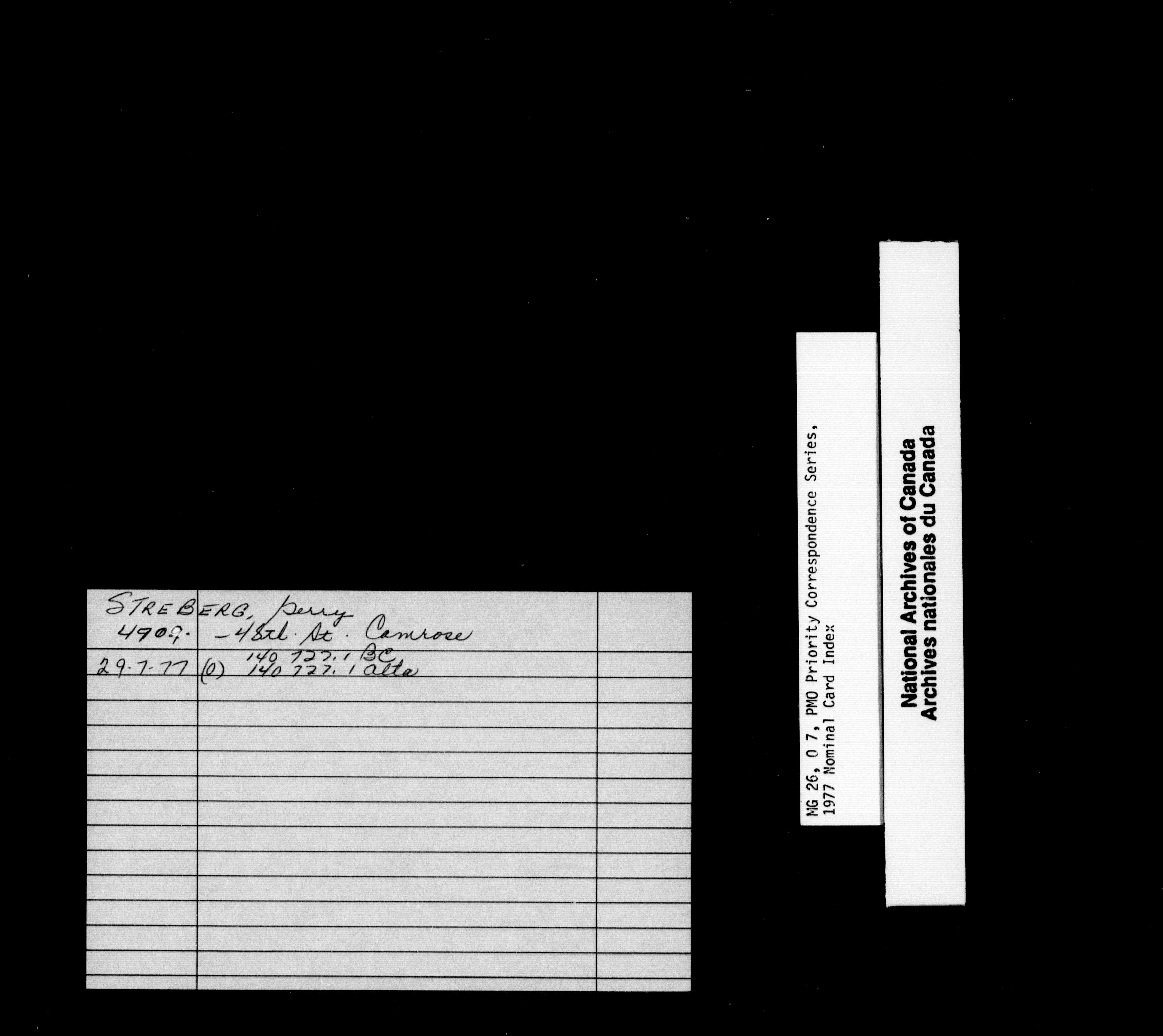 Pierre Elliott Trudeau priority correspondence 1976-1978 : Nominal Card Index - 1847
