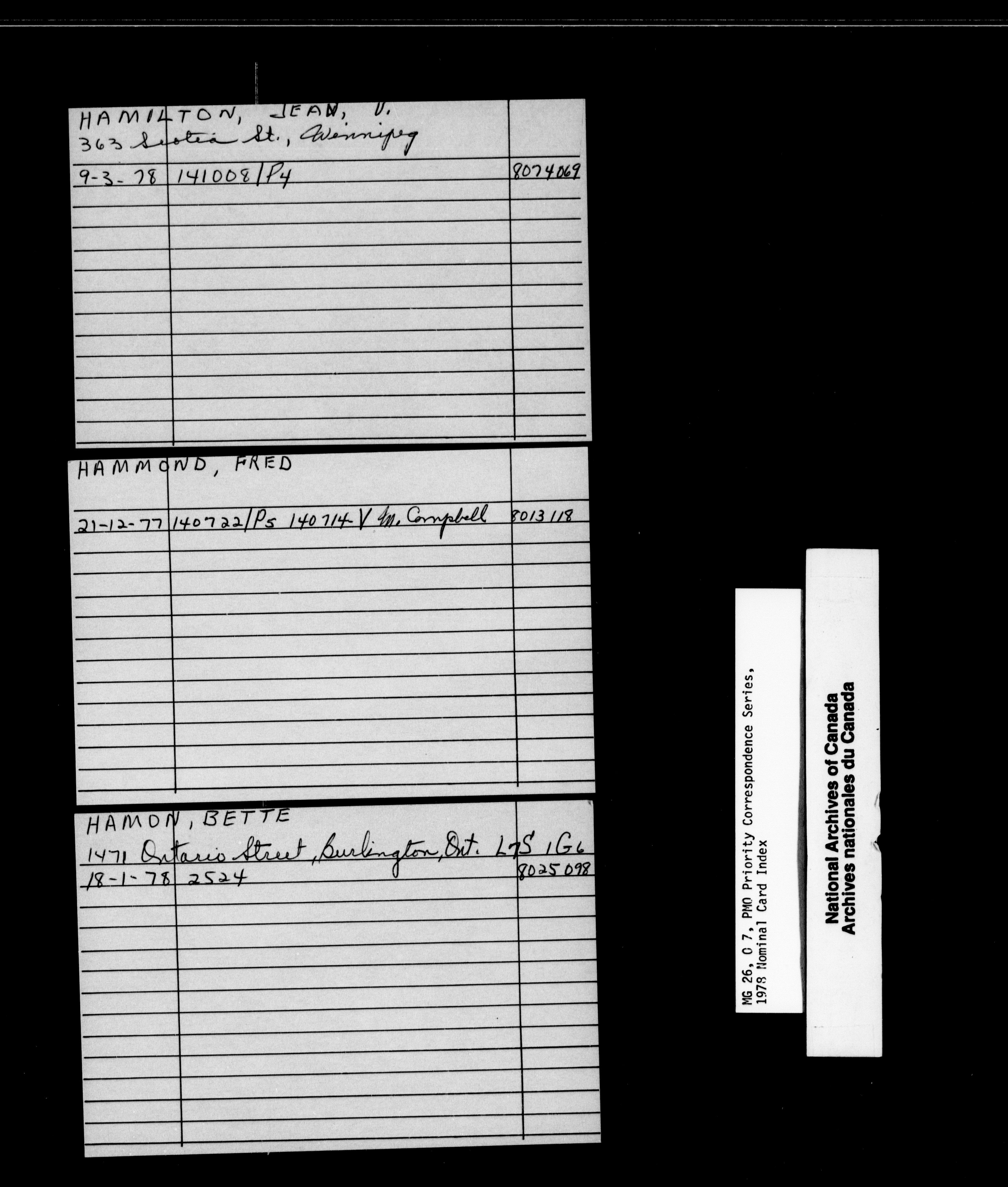 Pierre Elliott Trudeau priority correspondence 1976-1978 : Nominal Card Index - 1849