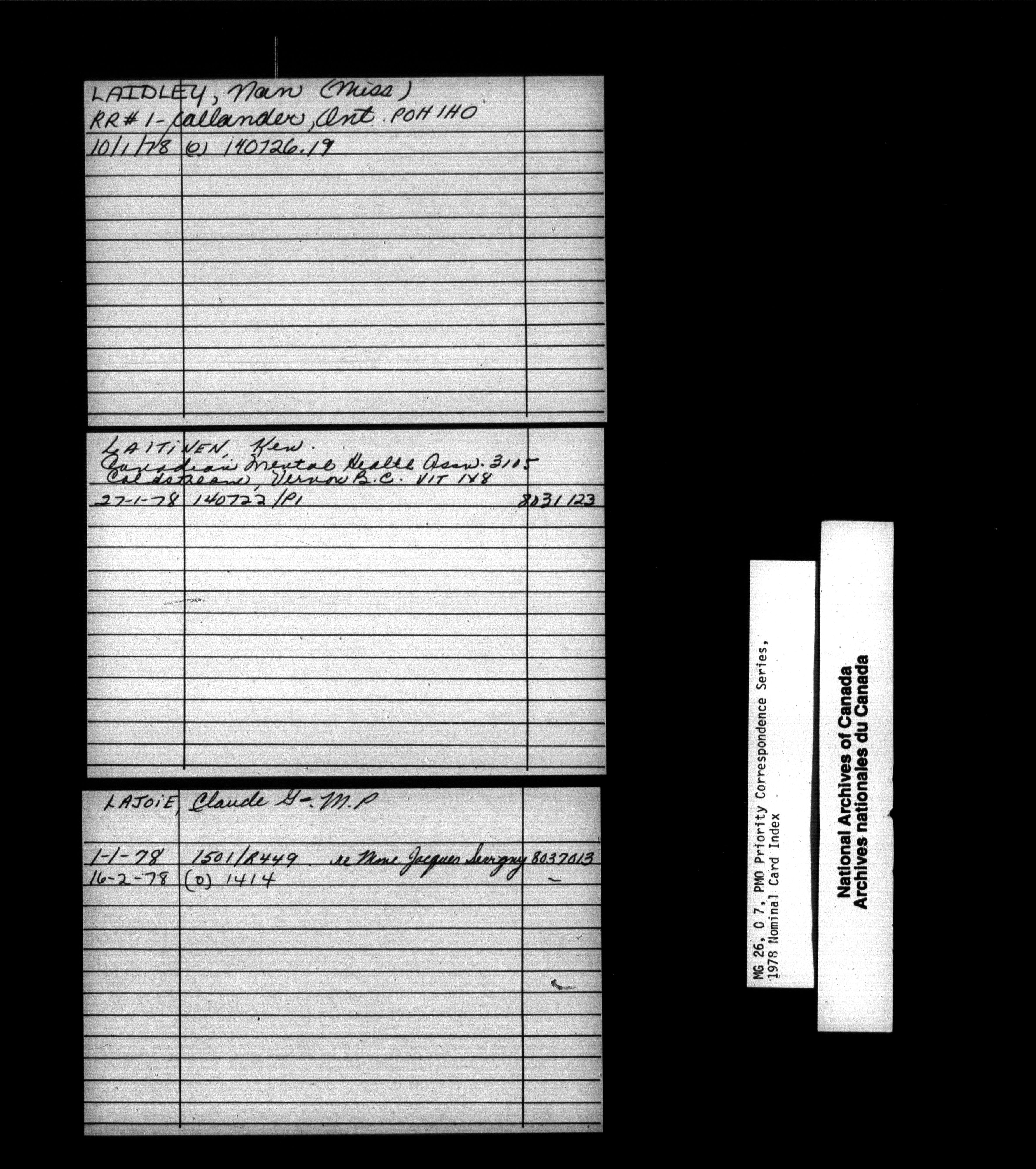 Pierre Elliott Trudeau Priority Correspondence 1976-1978 : Nominal Card Index - 1850