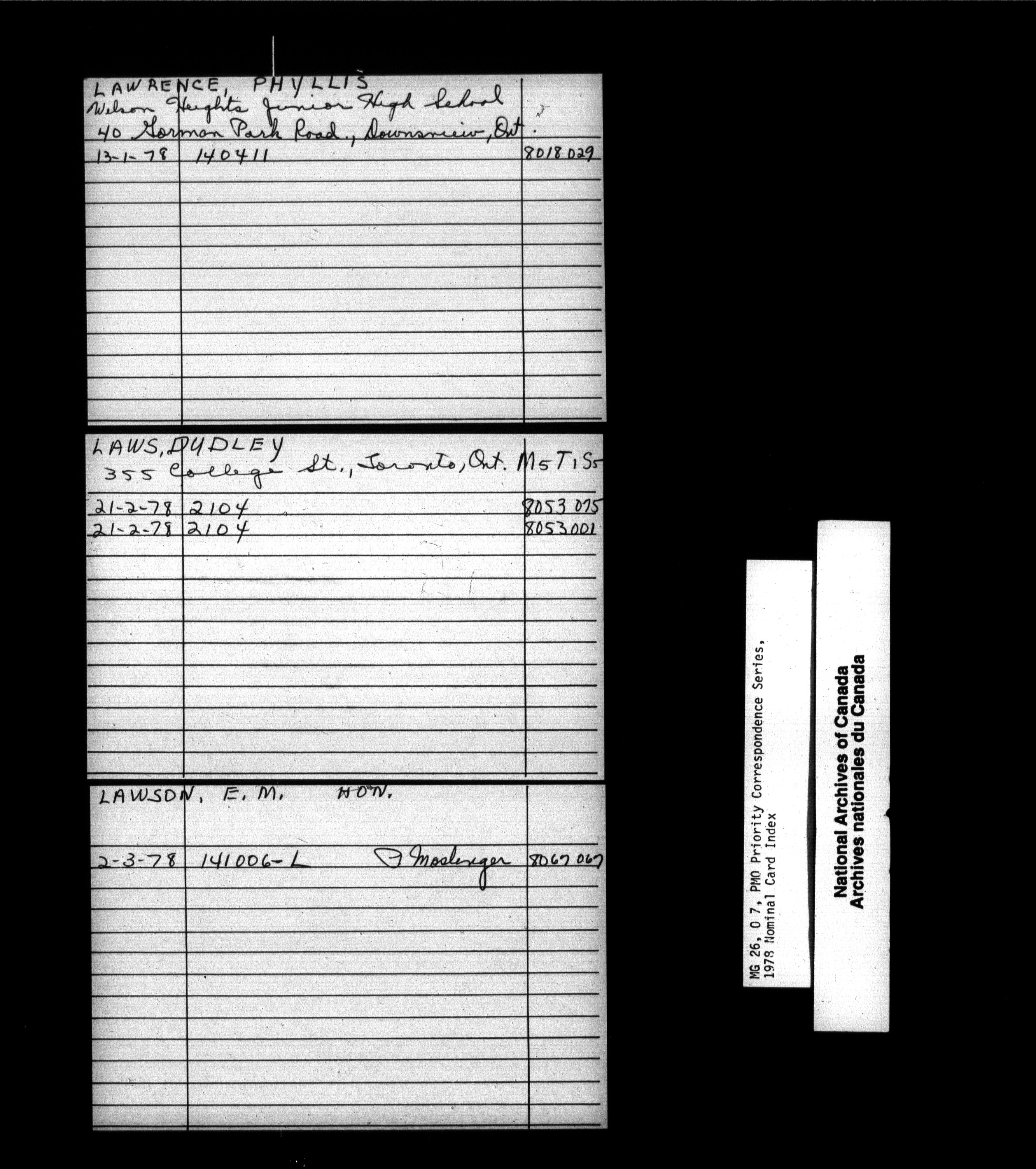 Pierre Elliott Trudeau Priority Correspondence 1976-1978 : Nominal Card Index - 1850