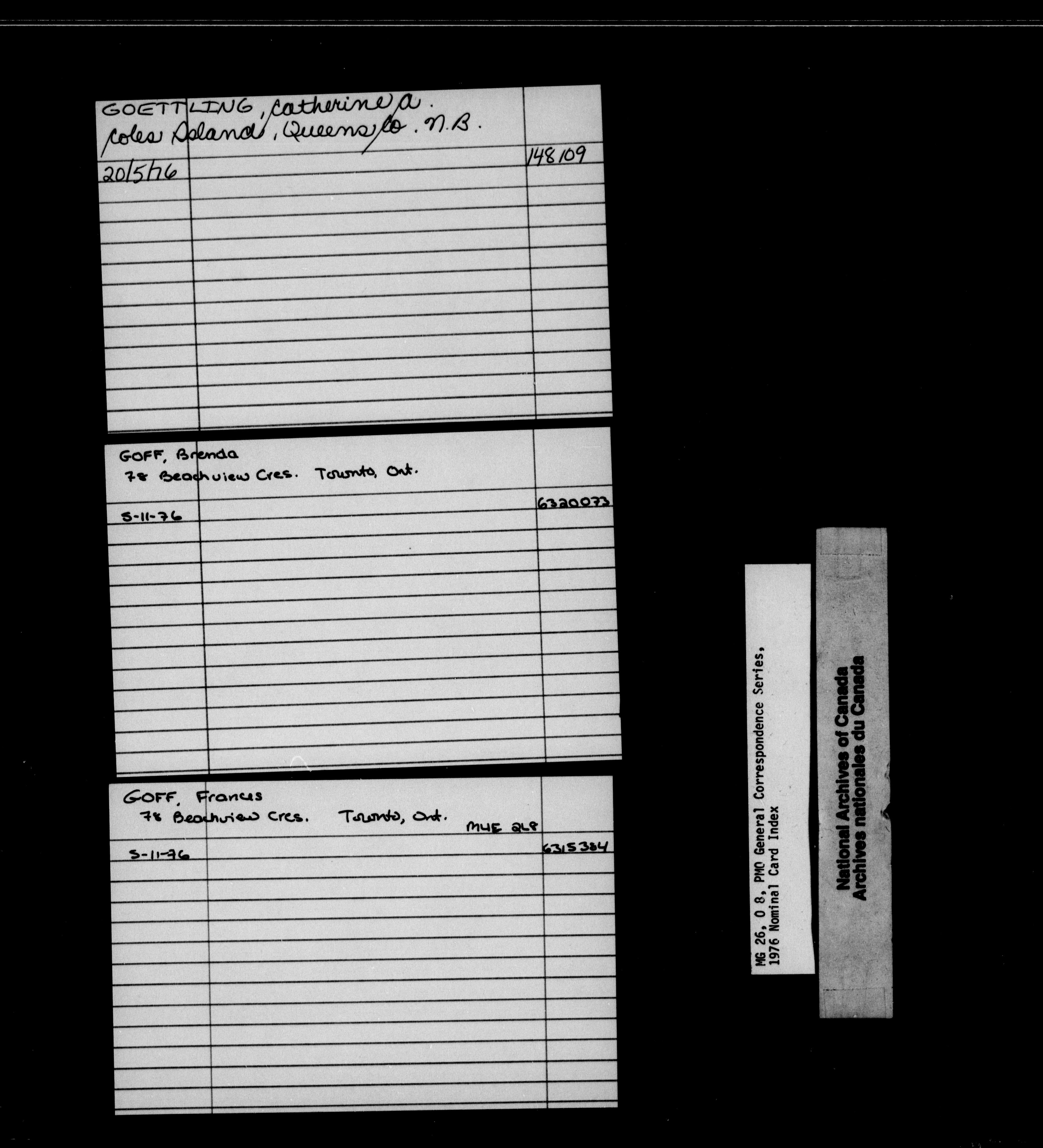 Prime Minister general correspondence : Nominal Card Index, 1976 - 1851