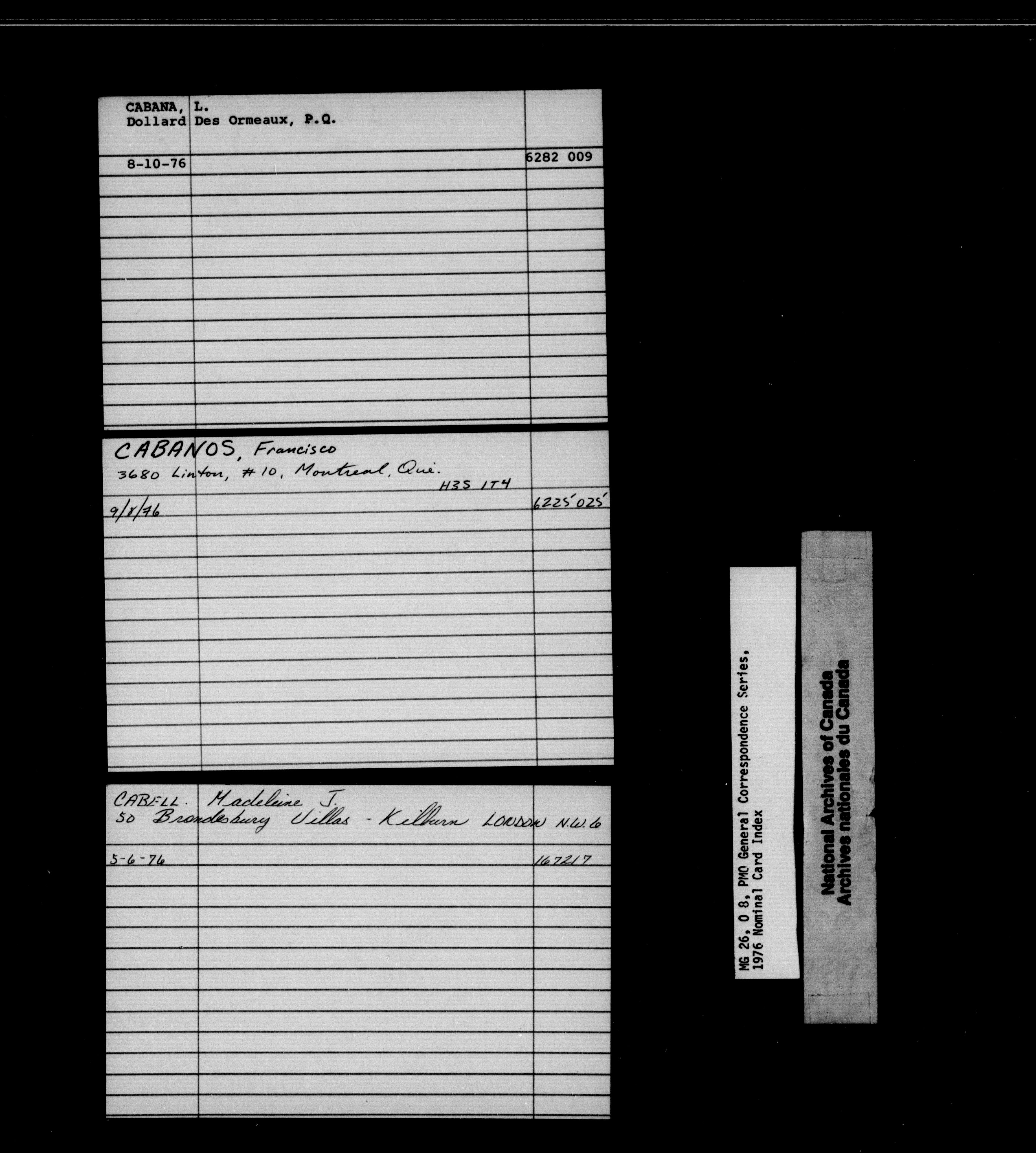 Prime Minister general correspondence : Nominal Card Index, 1976 - 1851