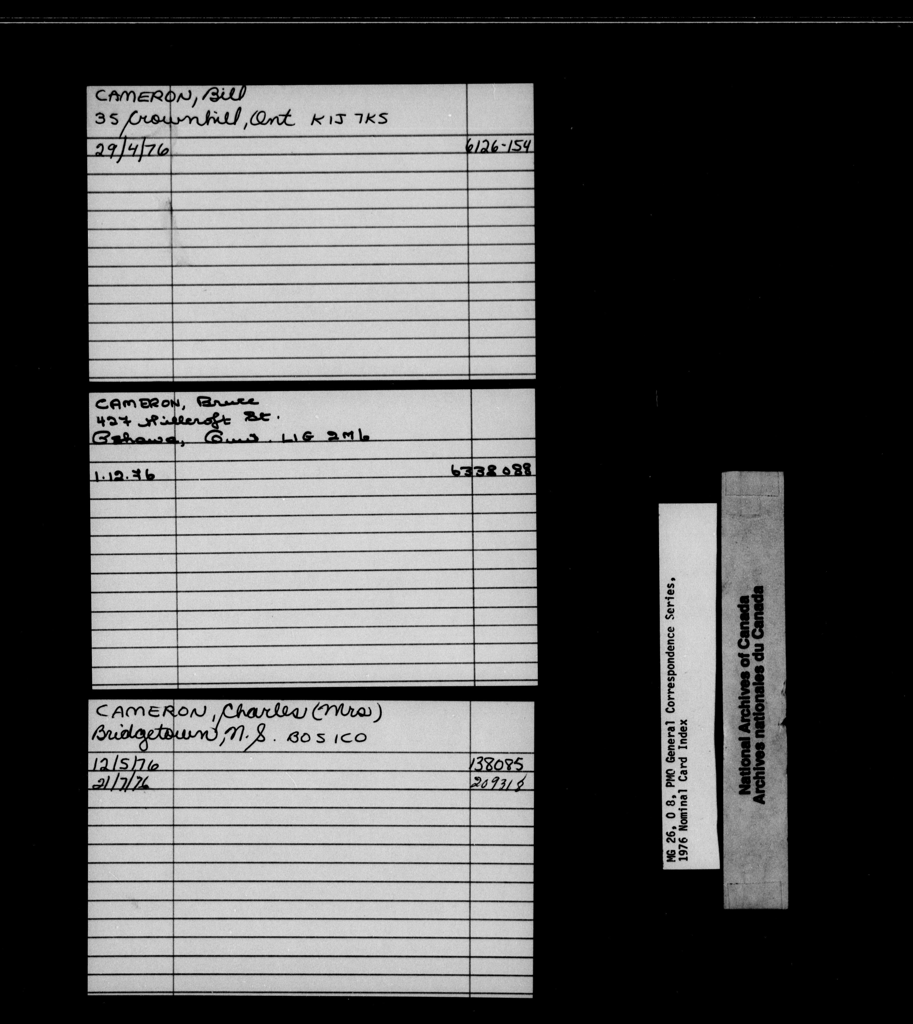 Prime Minister general correspondence : Nominal Card Index, 1976 - 1851