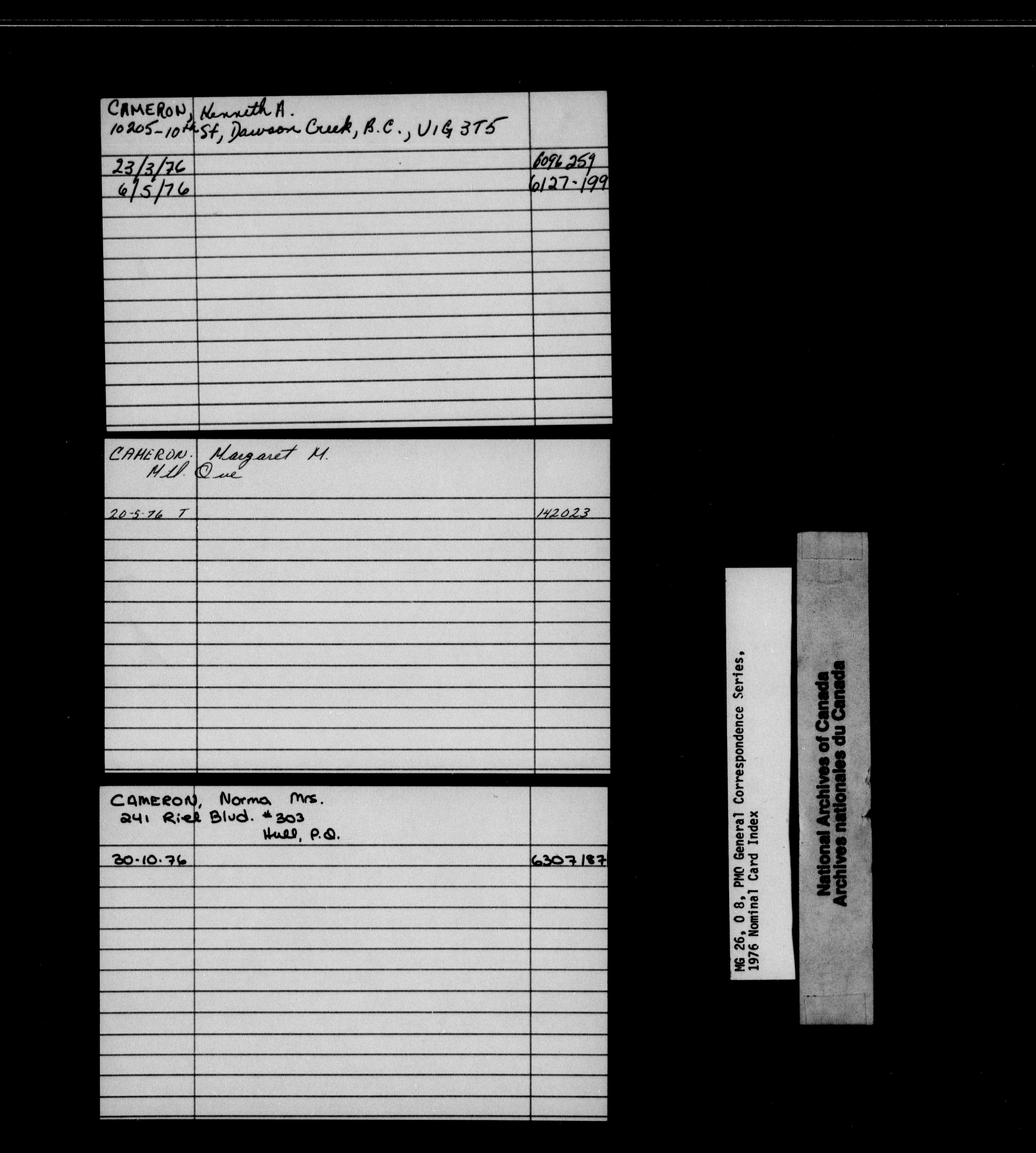 Prime Minister general correspondence : Nominal Card Index, 1976 - 1851