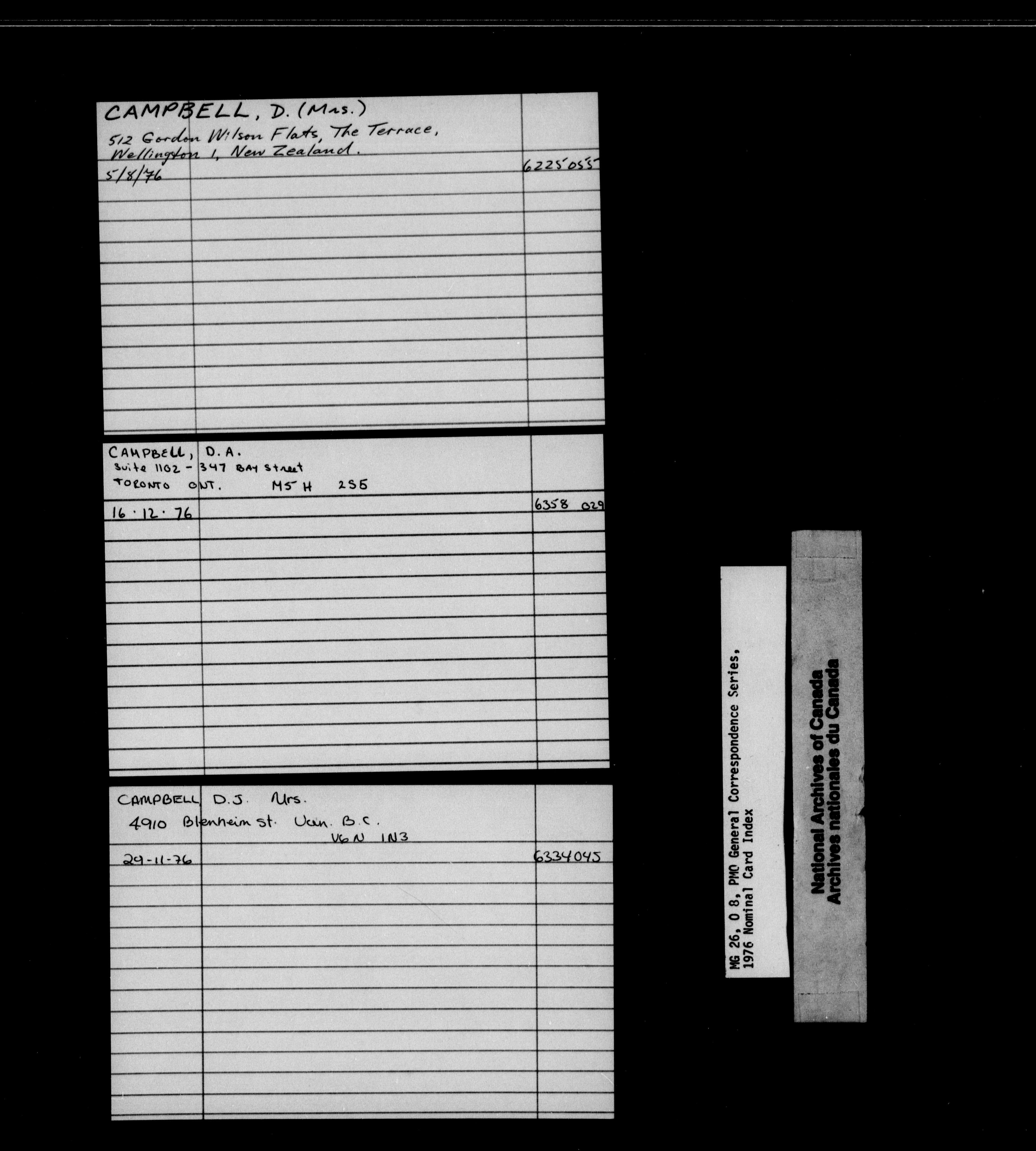 Prime Minister general correspondence : Nominal Card Index, 1976 - 1851