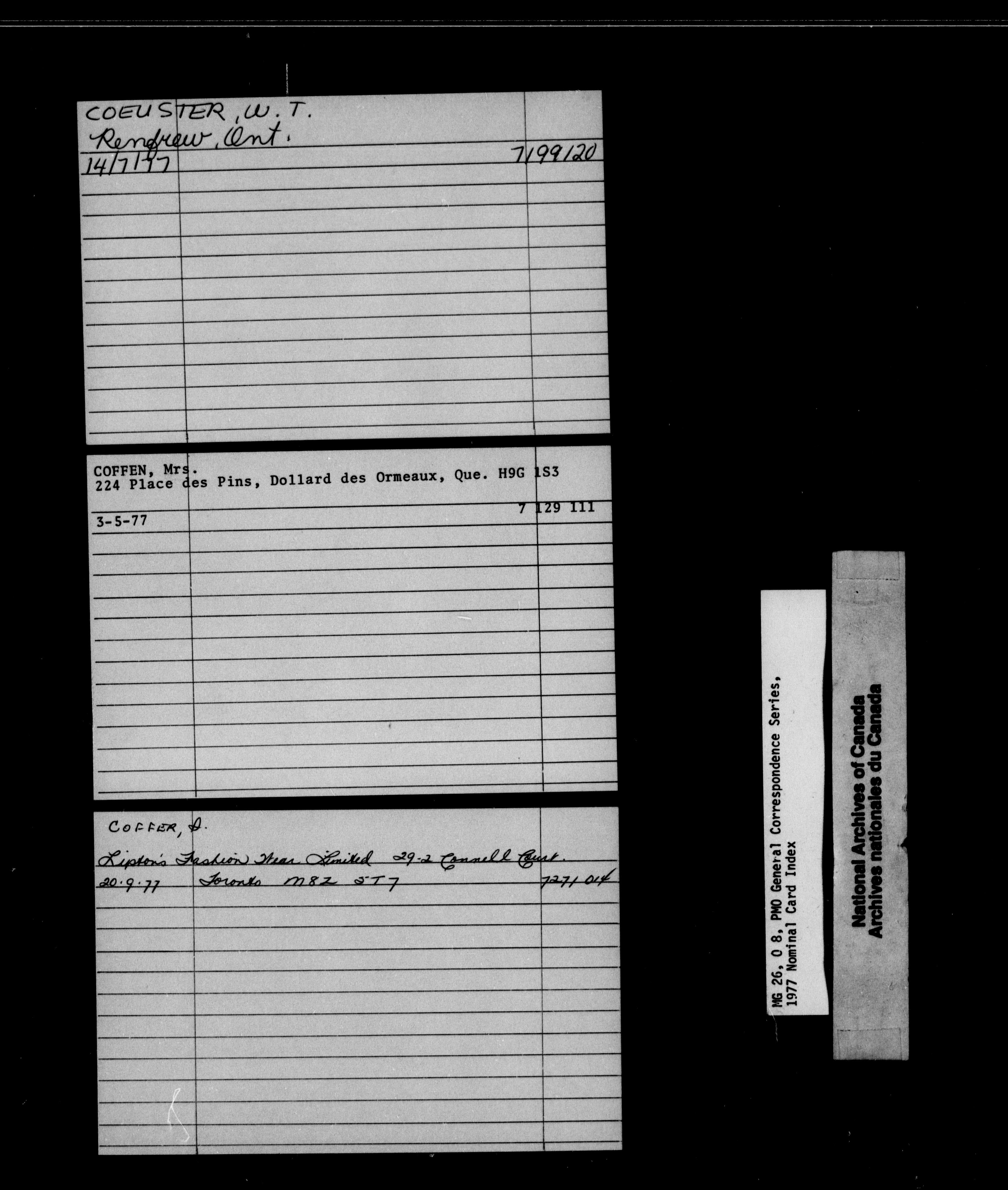Prime Minister general correspondence - Nominal card index 1976 - 1855