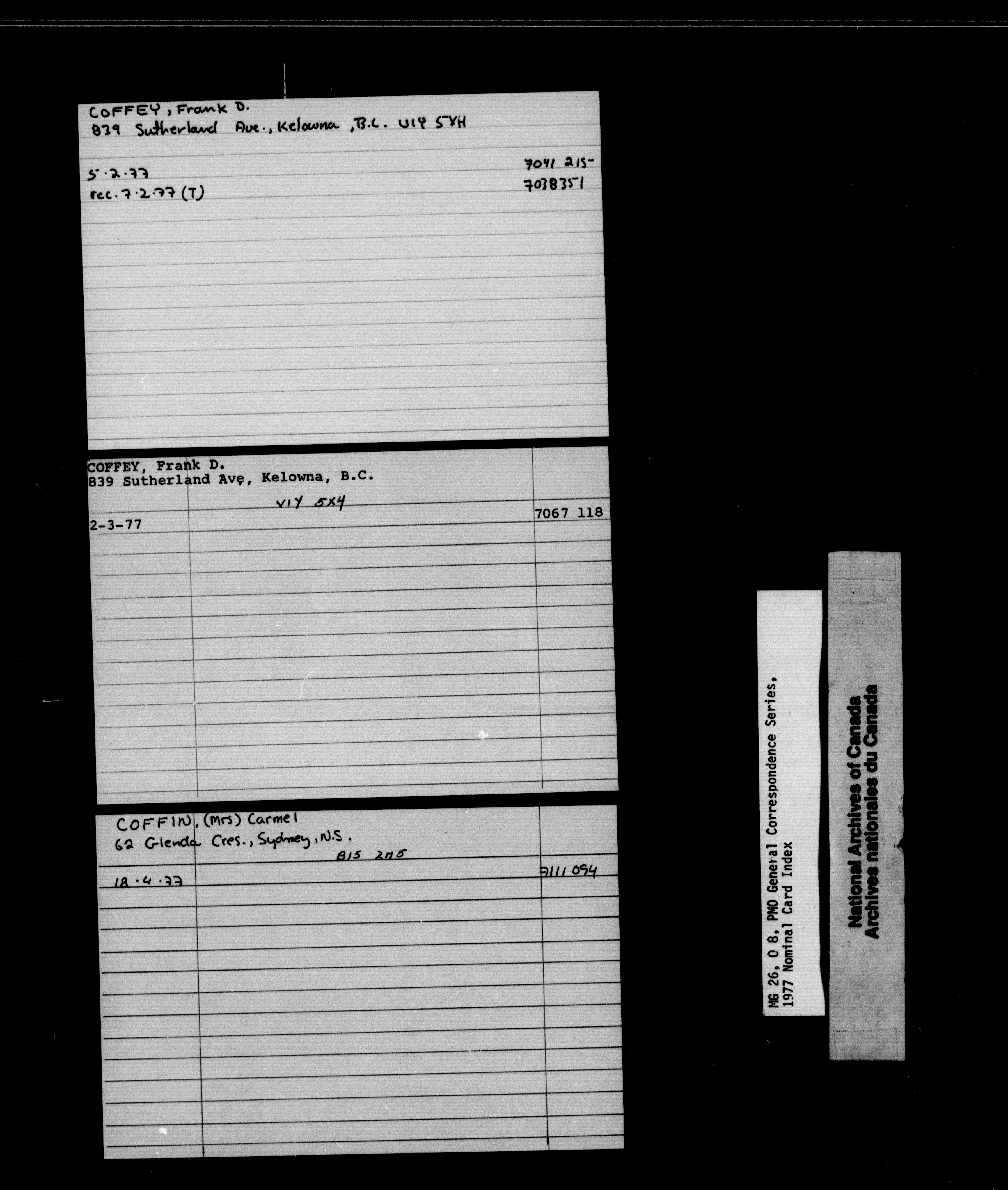 Prime Minister general correspondence - Nominal card index 1976 - 1855