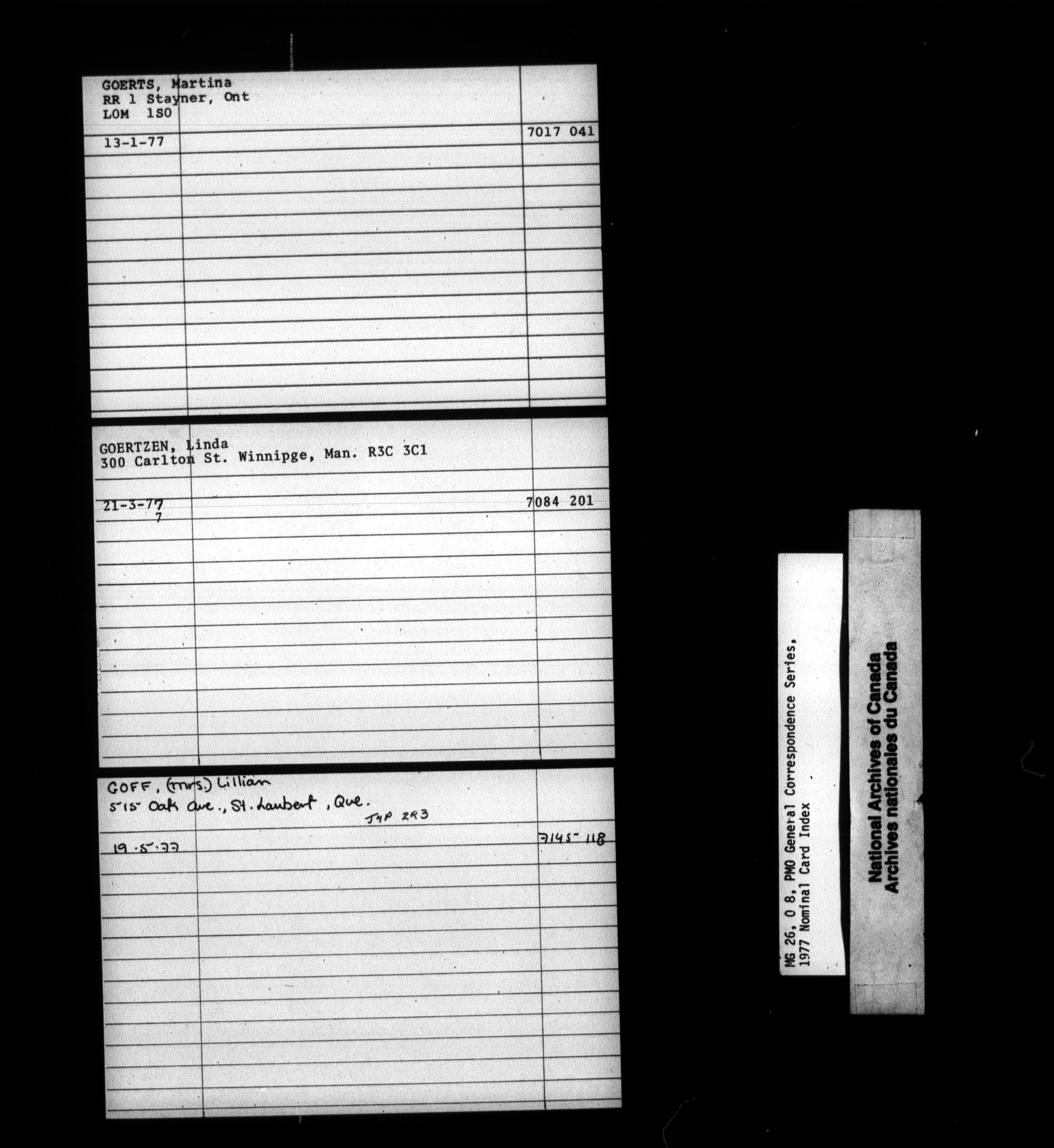 Pierre Elliott Trudeau General Correspondence 1976-1978 : Nominal Card Index - 1857