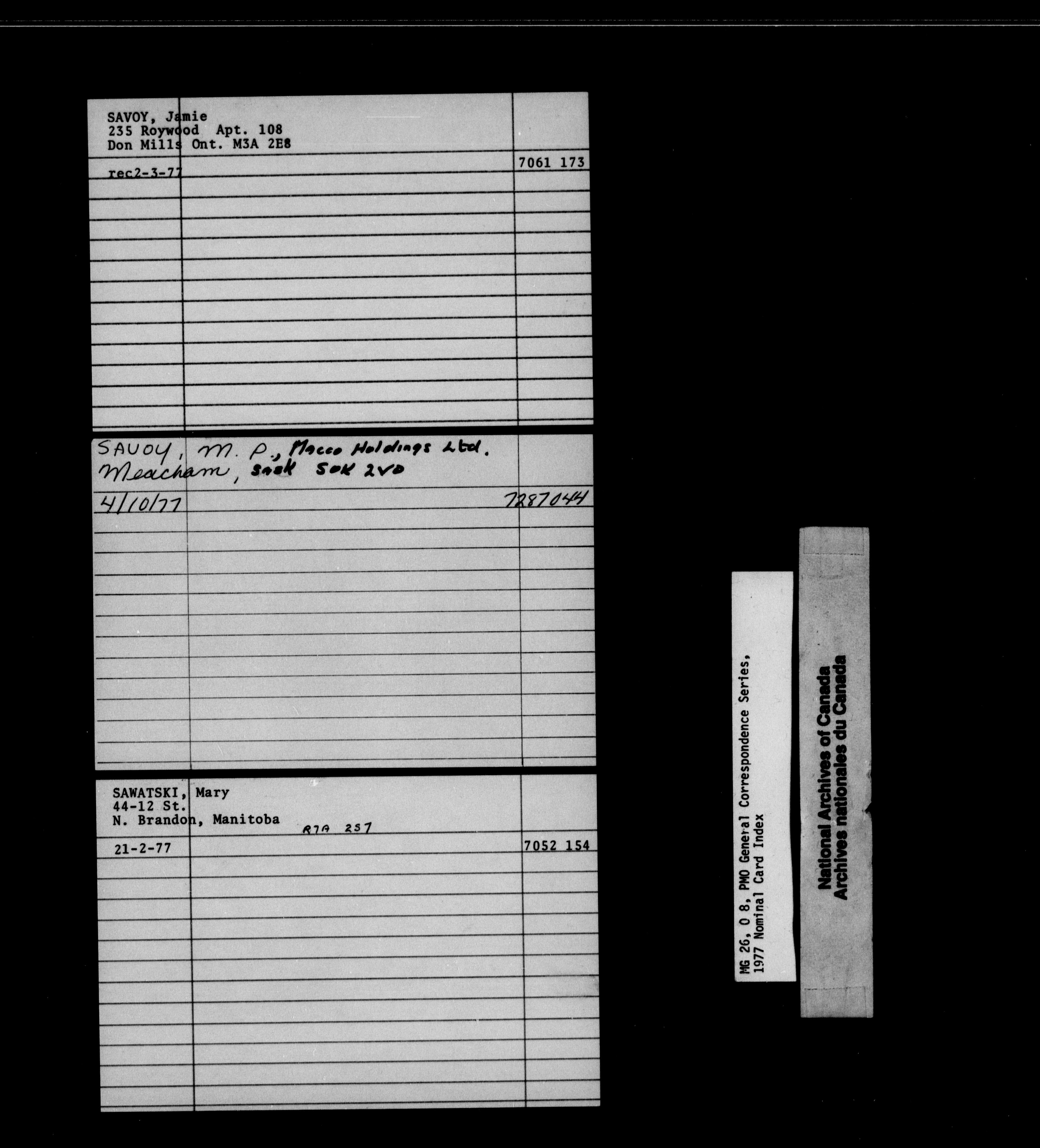Pierre Elliott Trudeau General Correspondence 1976-1978 : Nominal Card Index - 1859