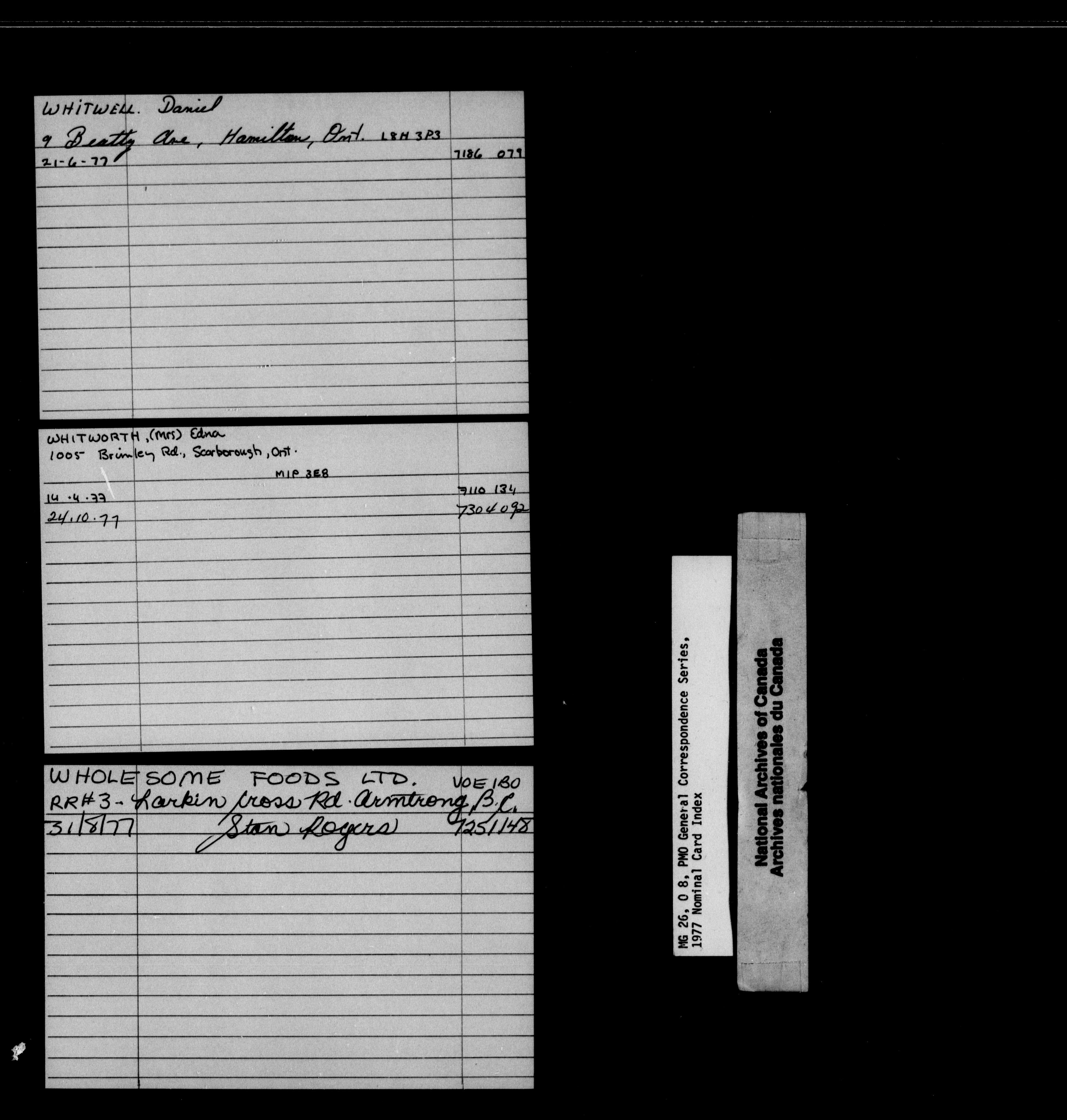 Pierre Elliott Trudeau General Correspondence 1976-1978 : Nominal Card Index - 1860