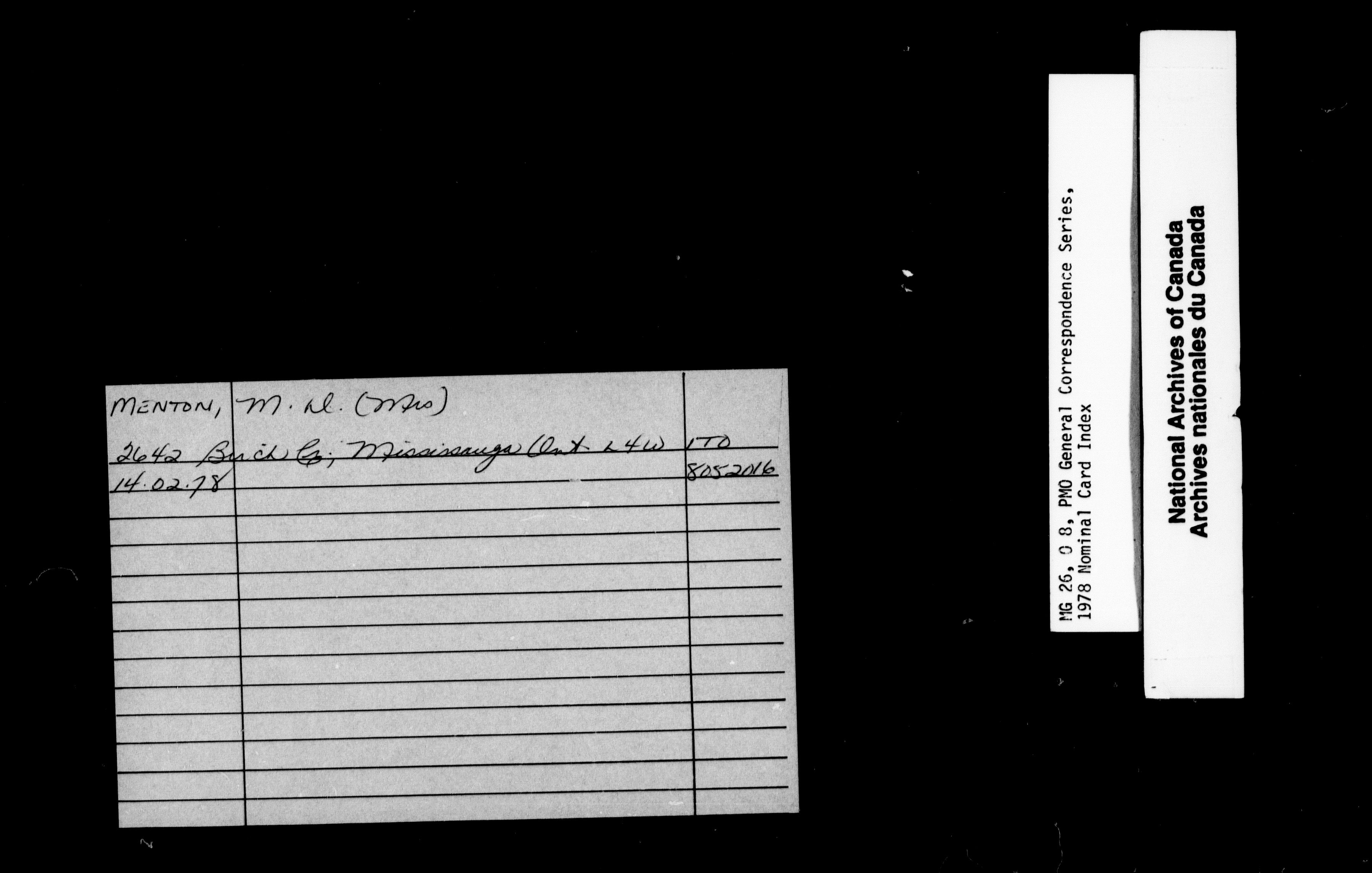 Pierre Elliott Trudeau General Correspondence 1976-1978 : Nominal Card Index - 1862