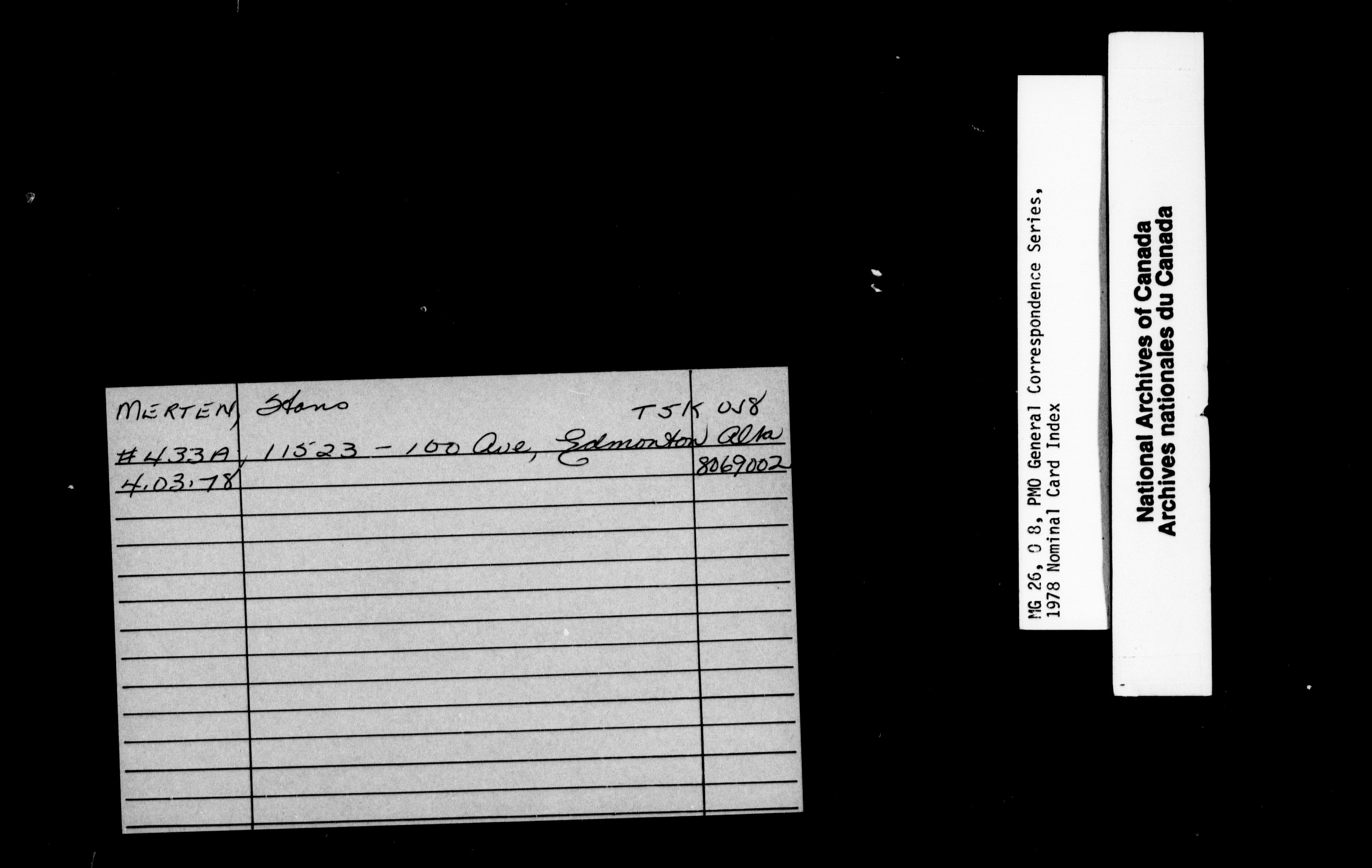 Pierre Elliott Trudeau General Correspondence 1976-1978 : Nominal Card Index - 1862