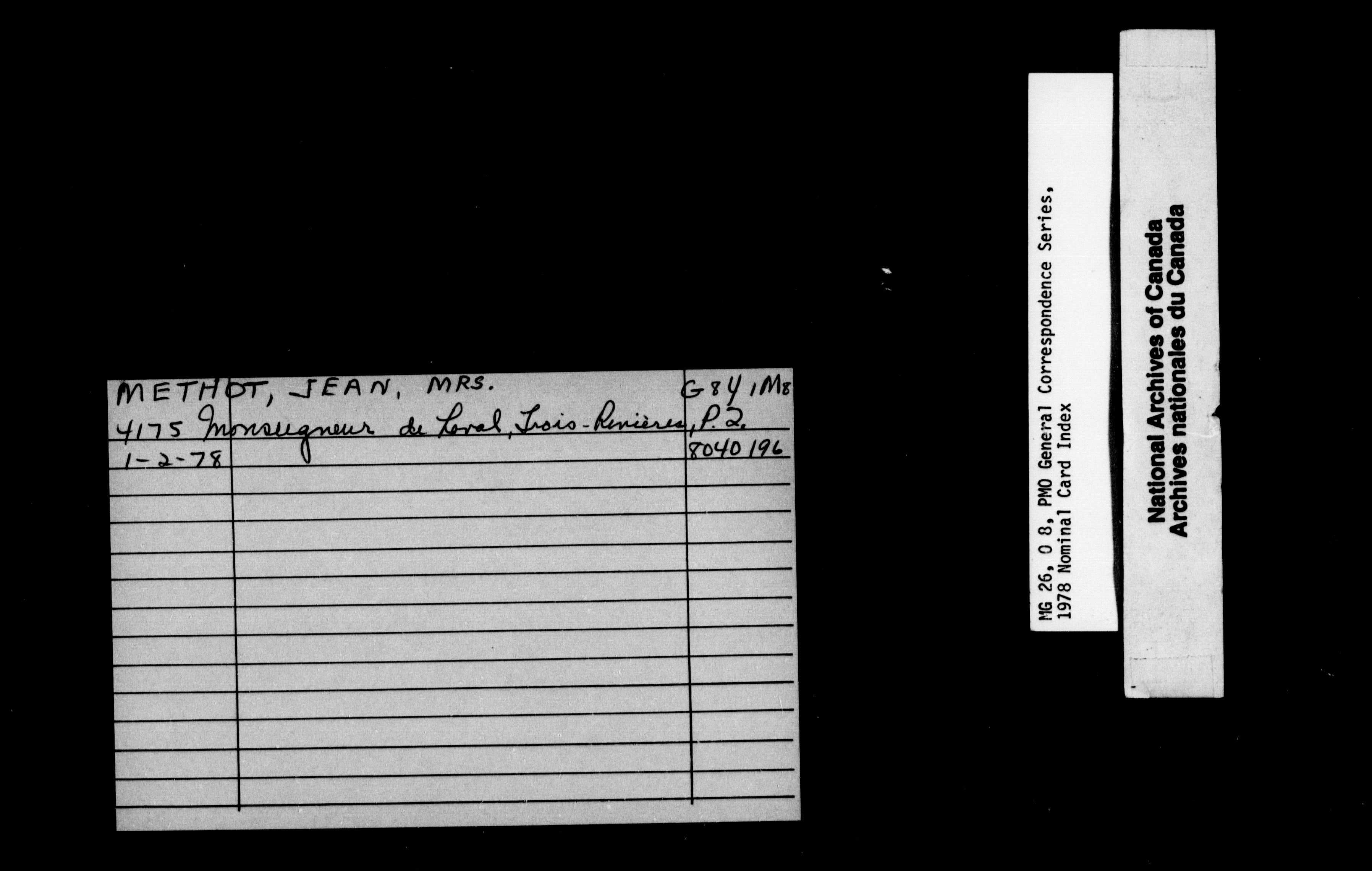 Pierre Elliott Trudeau General Correspondence 1976-1978 : Nominal Card Index - 1862
