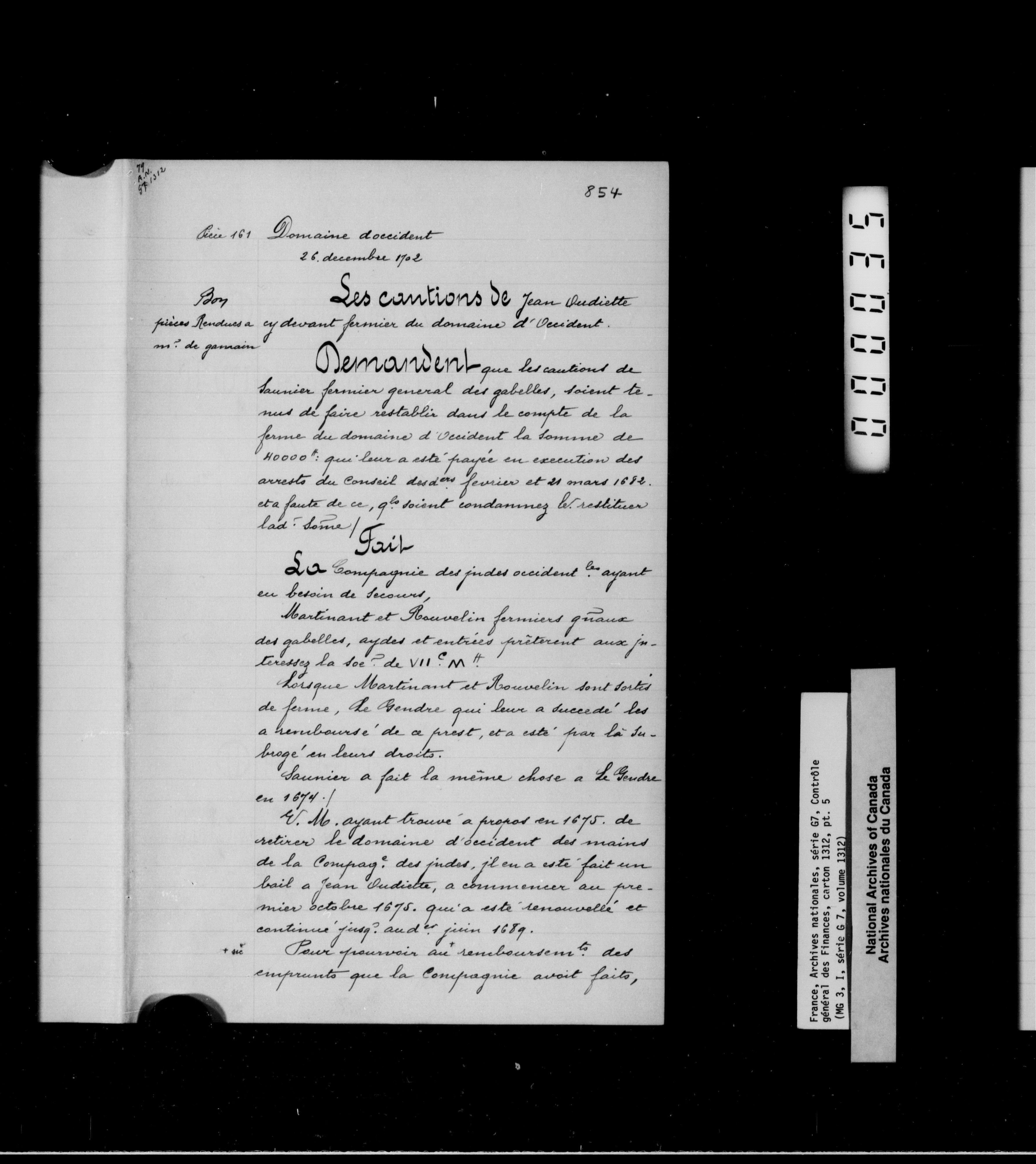 France, Archives Nationales, Section Ancienne, Serie G7, Contrôle General des Finances - 1884