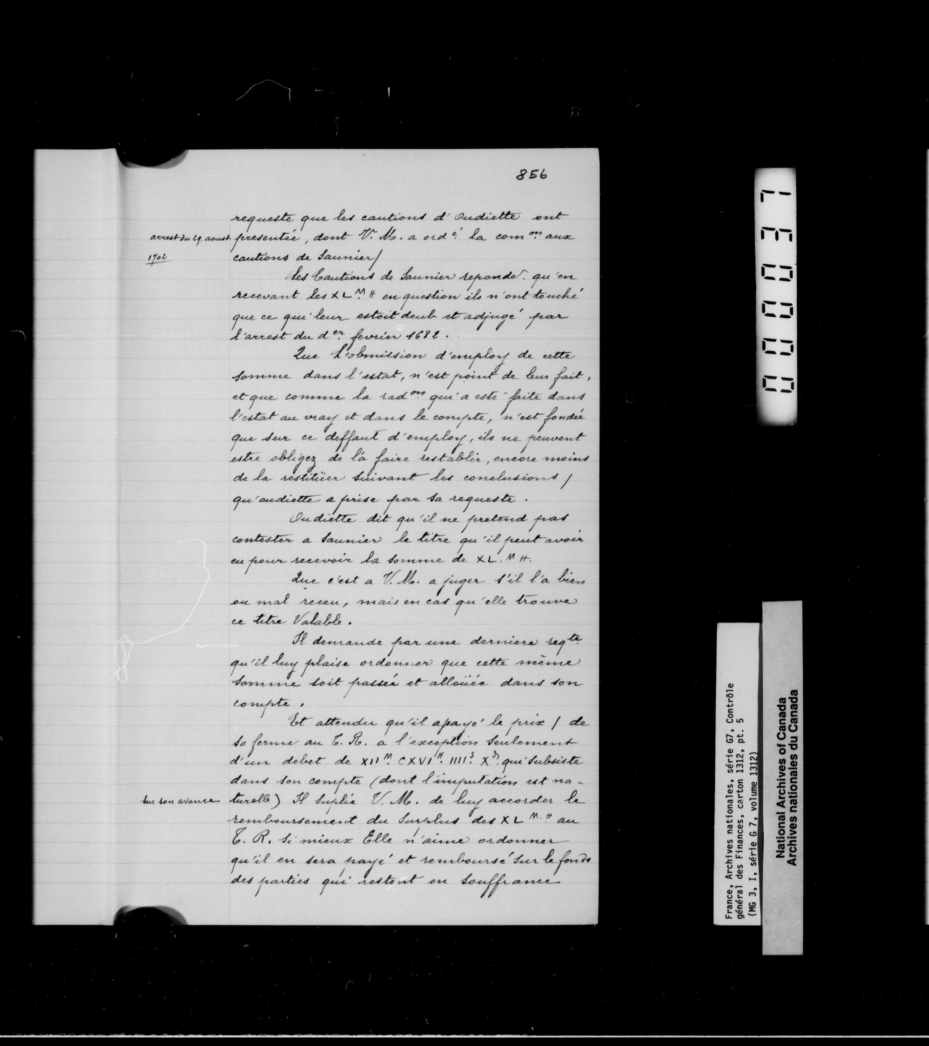 France, Archives Nationales, Section Ancienne, Serie G7, Contrôle General des Finances - 1884