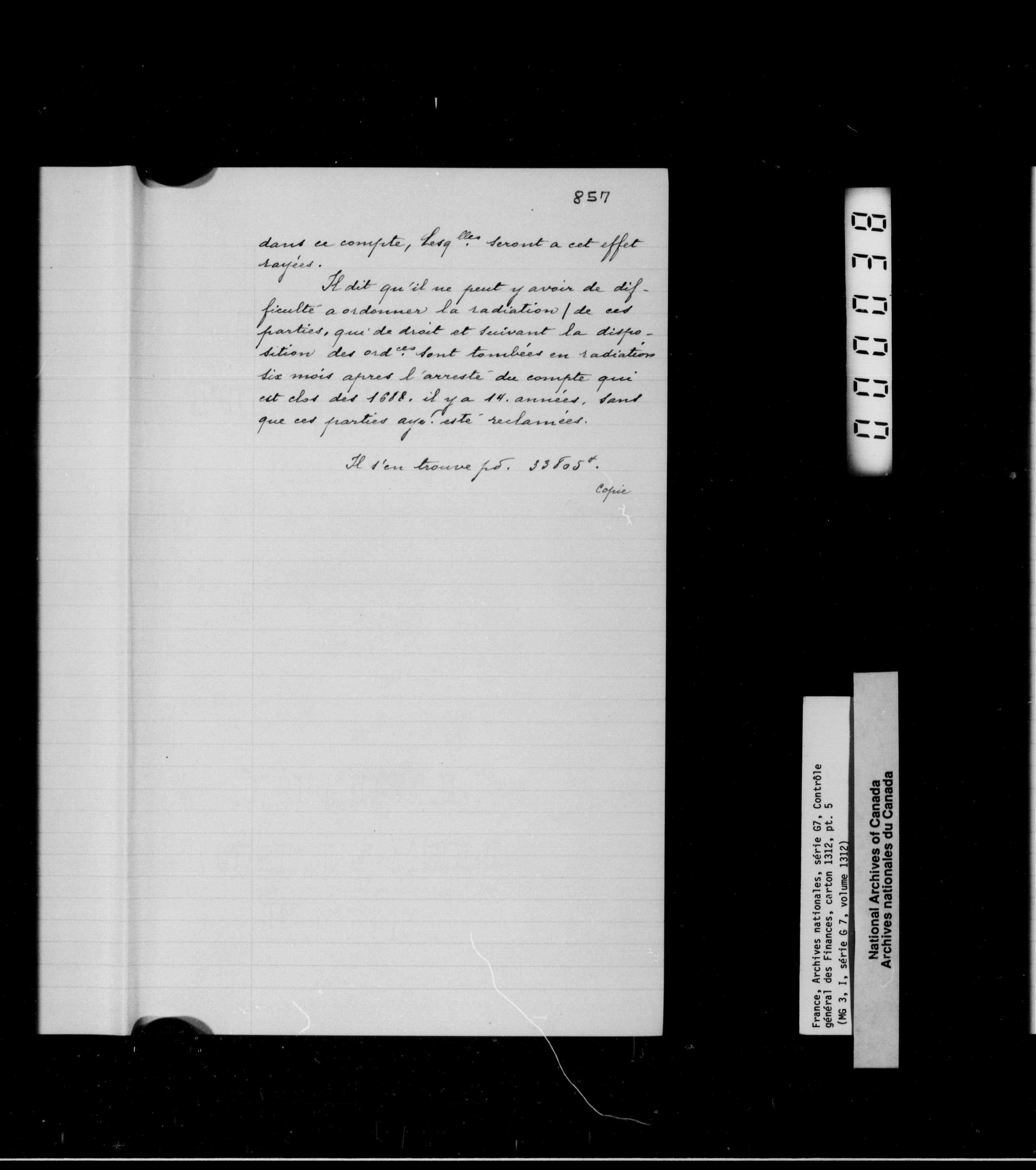 France, Archives Nationales, Section Ancienne, Serie G7, Contrôle General des Finances - 1884