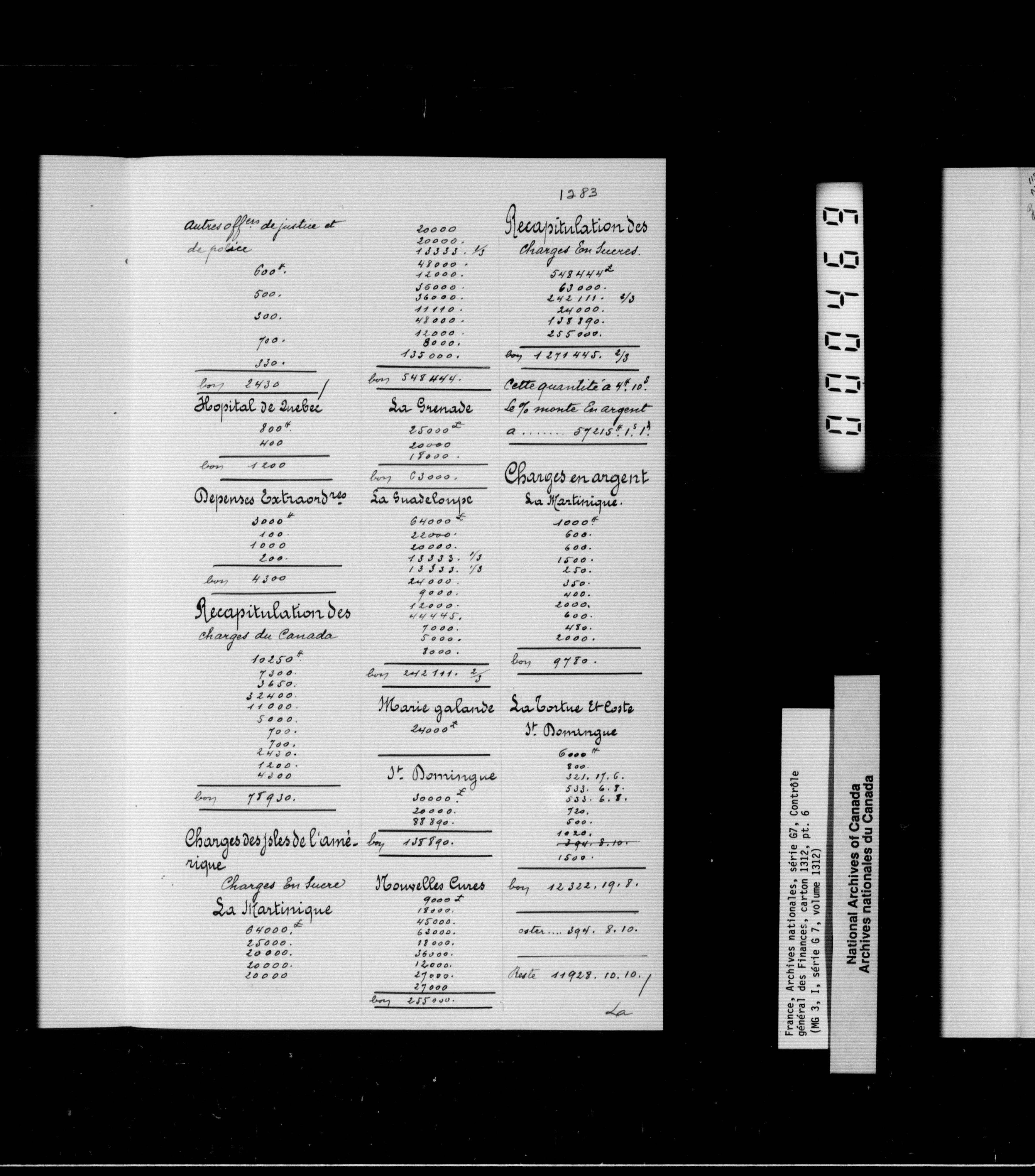 France, Archives Nationales, Section Ancienne, Serie G7, Contrôle General des Finances - 1884