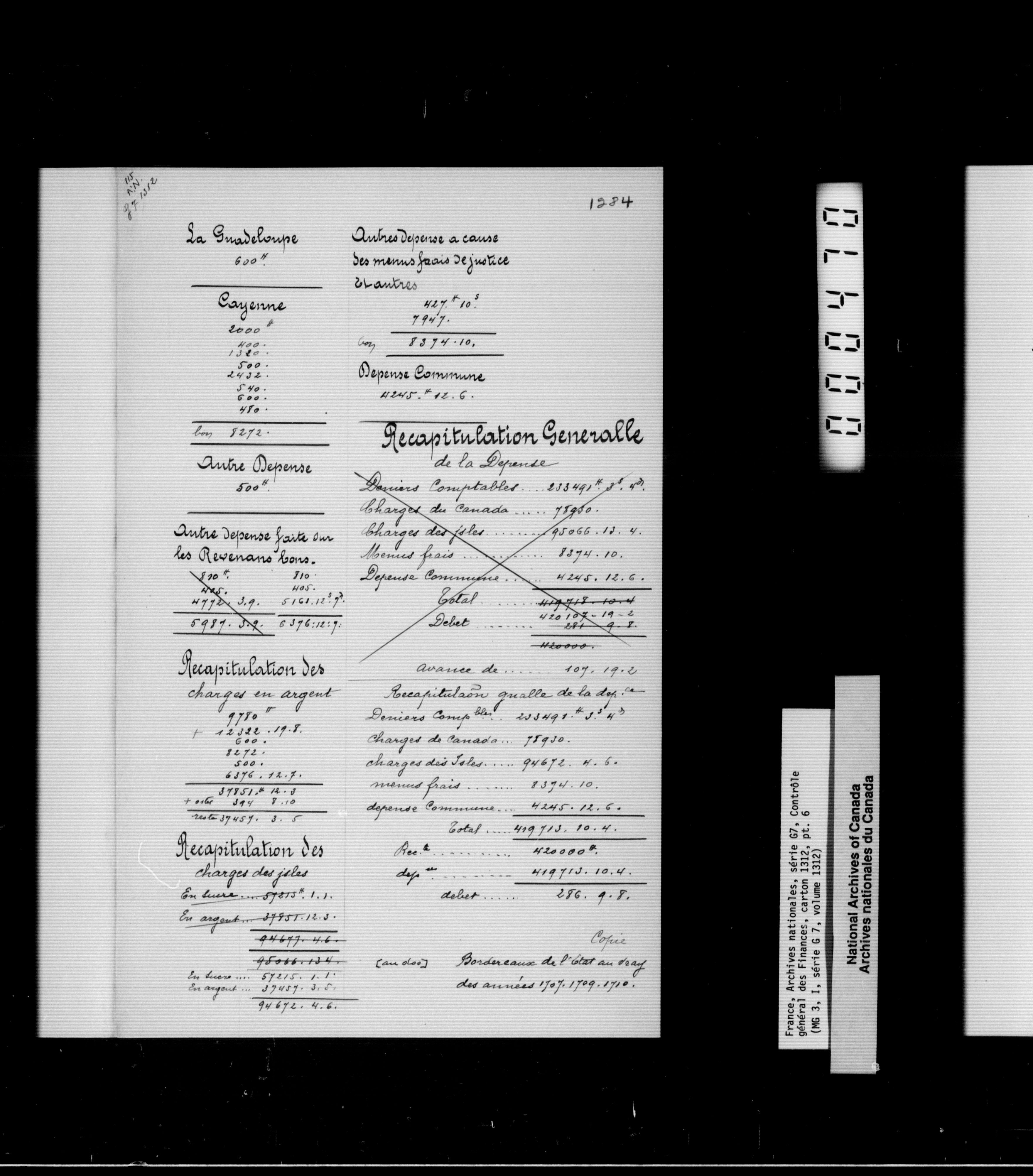 France, Archives Nationales, Section Ancienne, Serie G7, Contrôle General des Finances - 1884