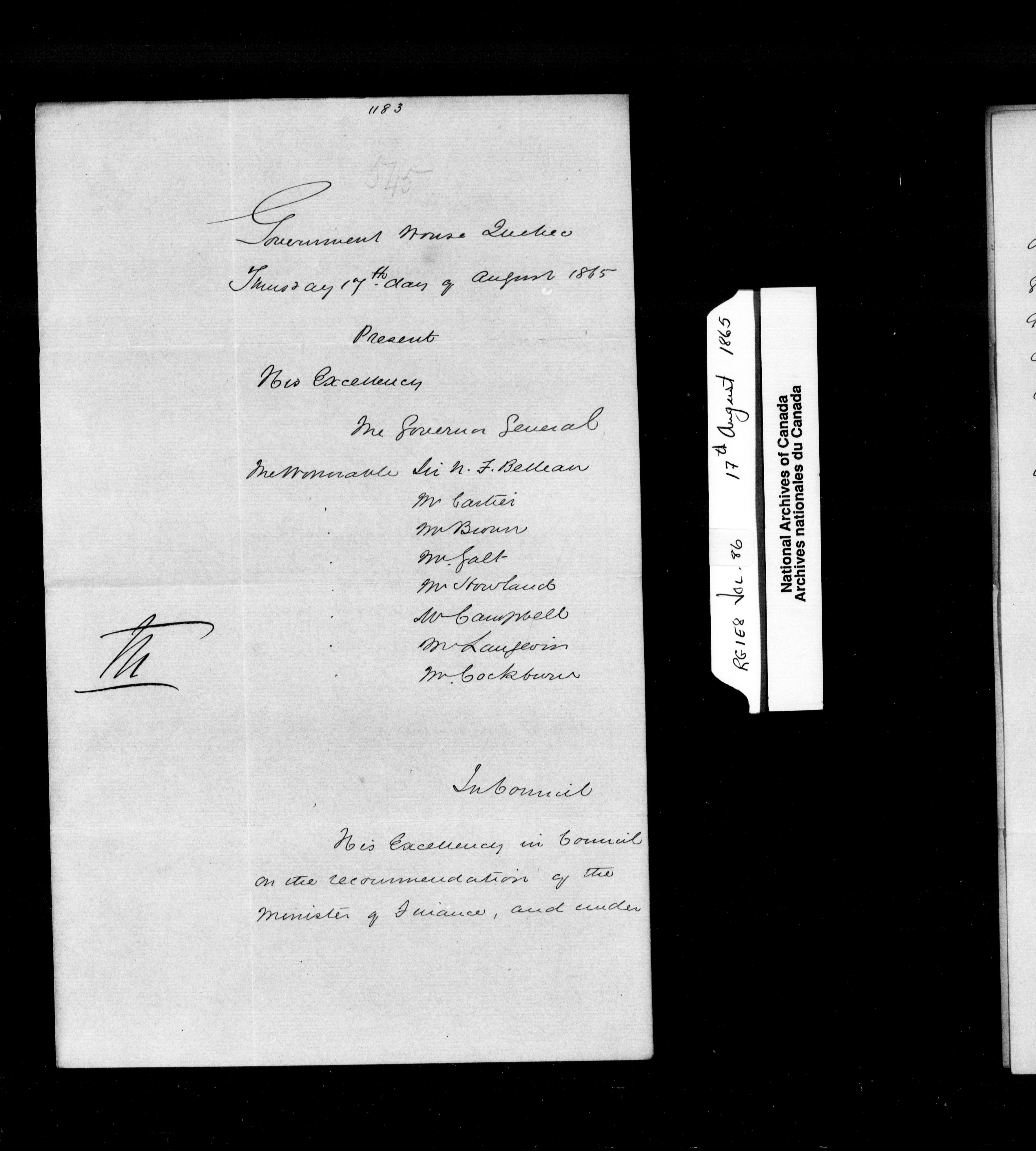 Orders in Council of the Executive Council of the Province of Canada - 1960