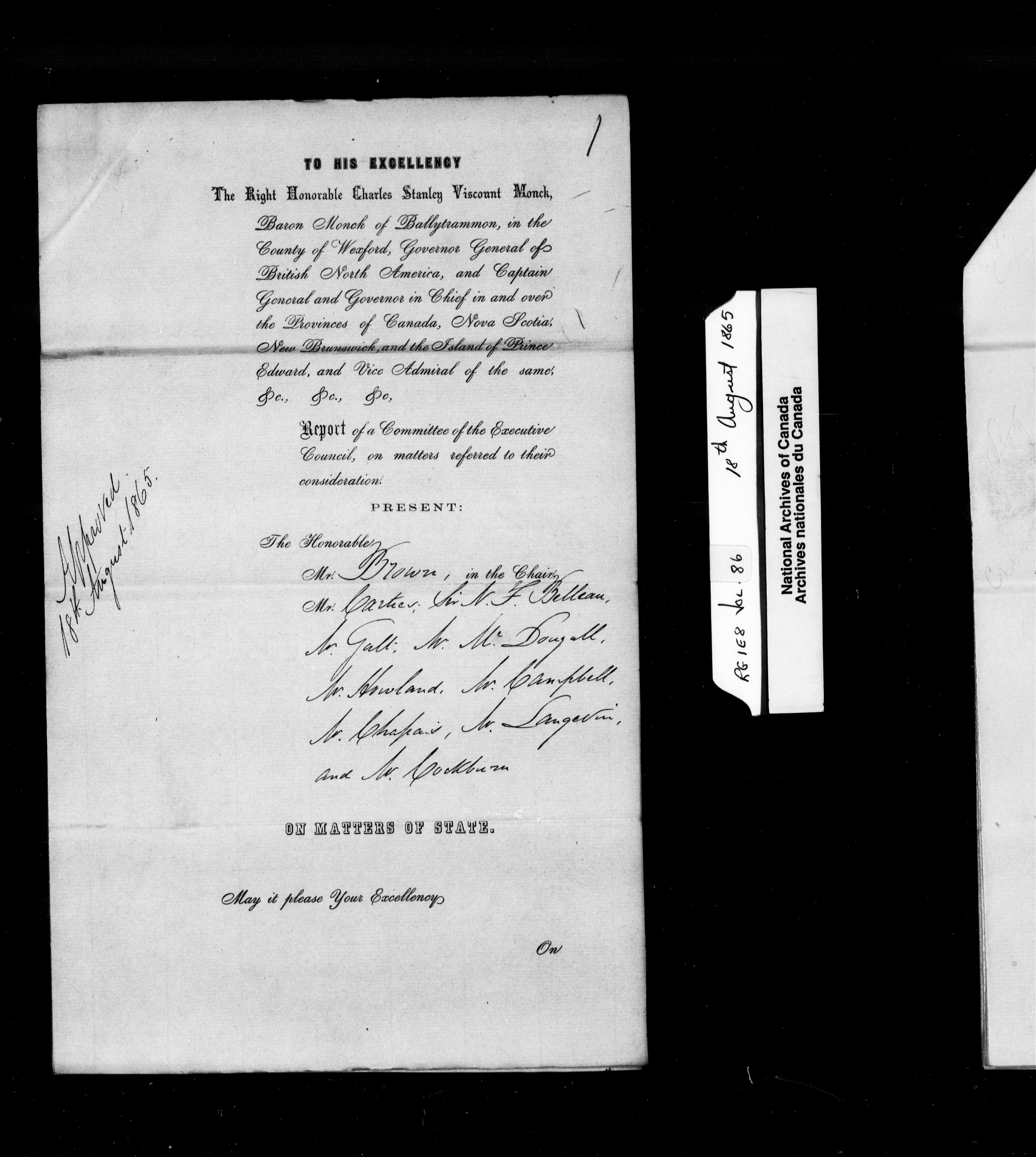 Orders in Council of the Executive Council of the Province of Canada - 1960