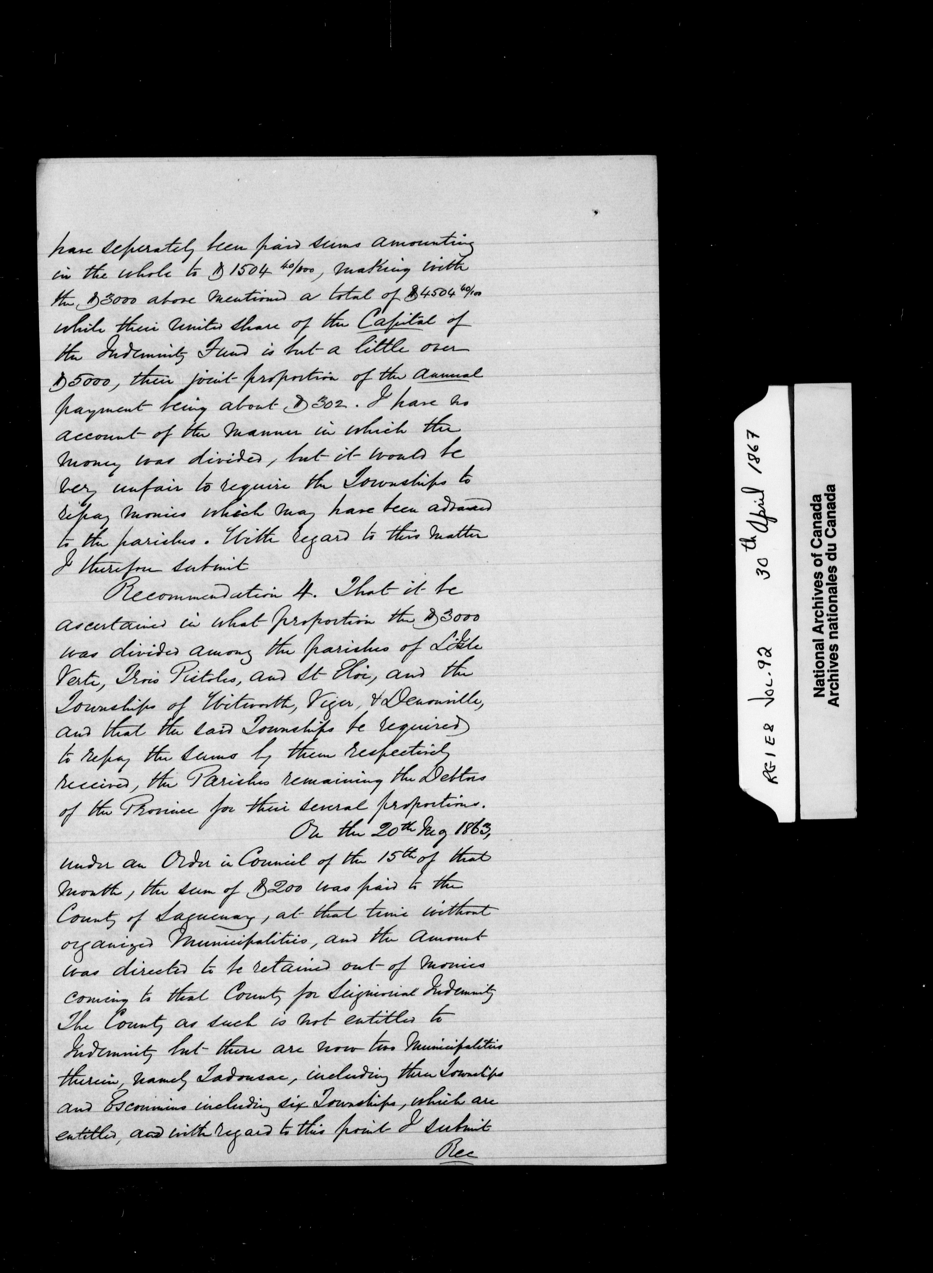 Orders in Council of the Executive Council of the Province of Canada - 1965