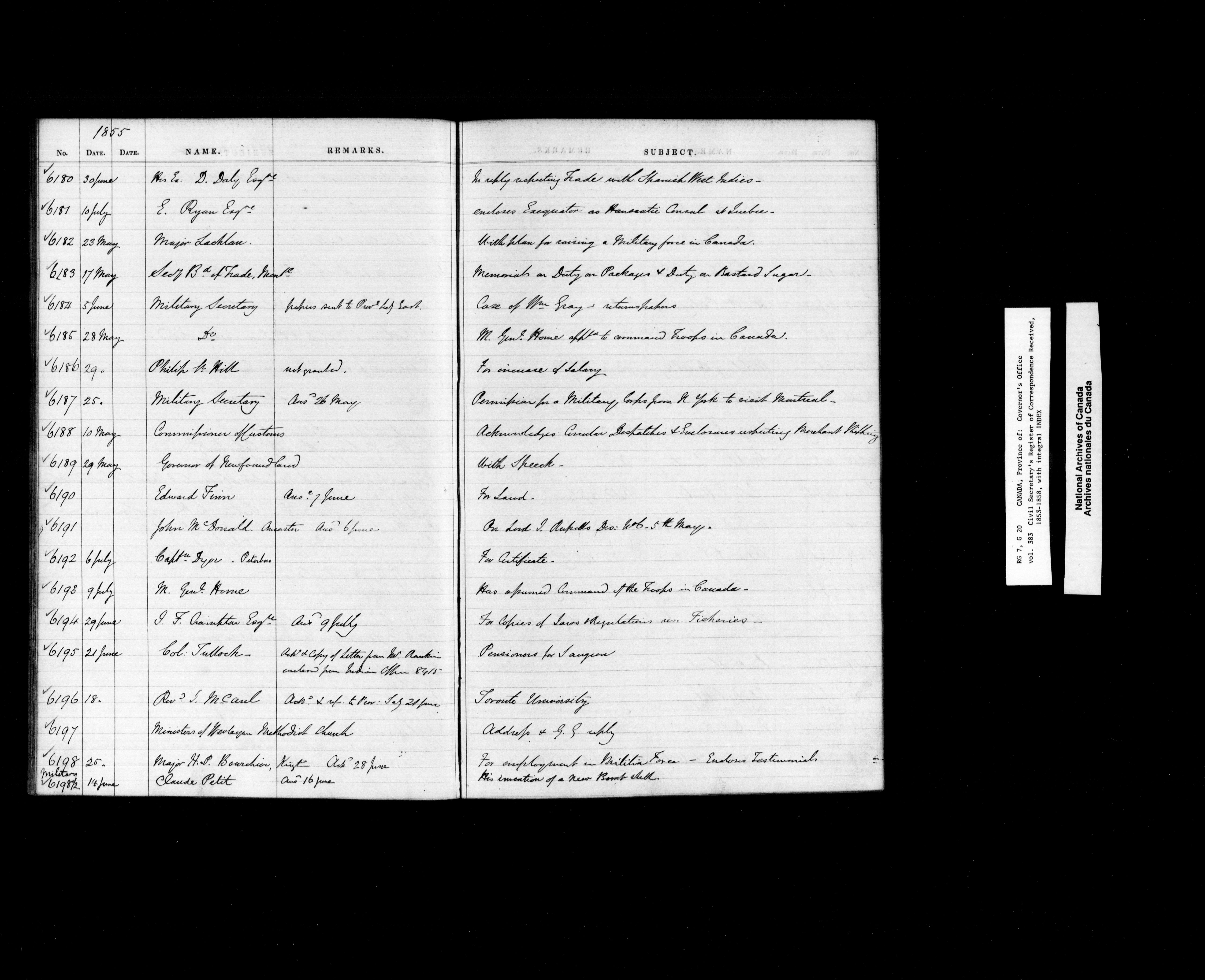 Province Of Canada, Civil Secretary's Numbered Correspondence, 1841- 1867 [Province Of Canada] - 1968