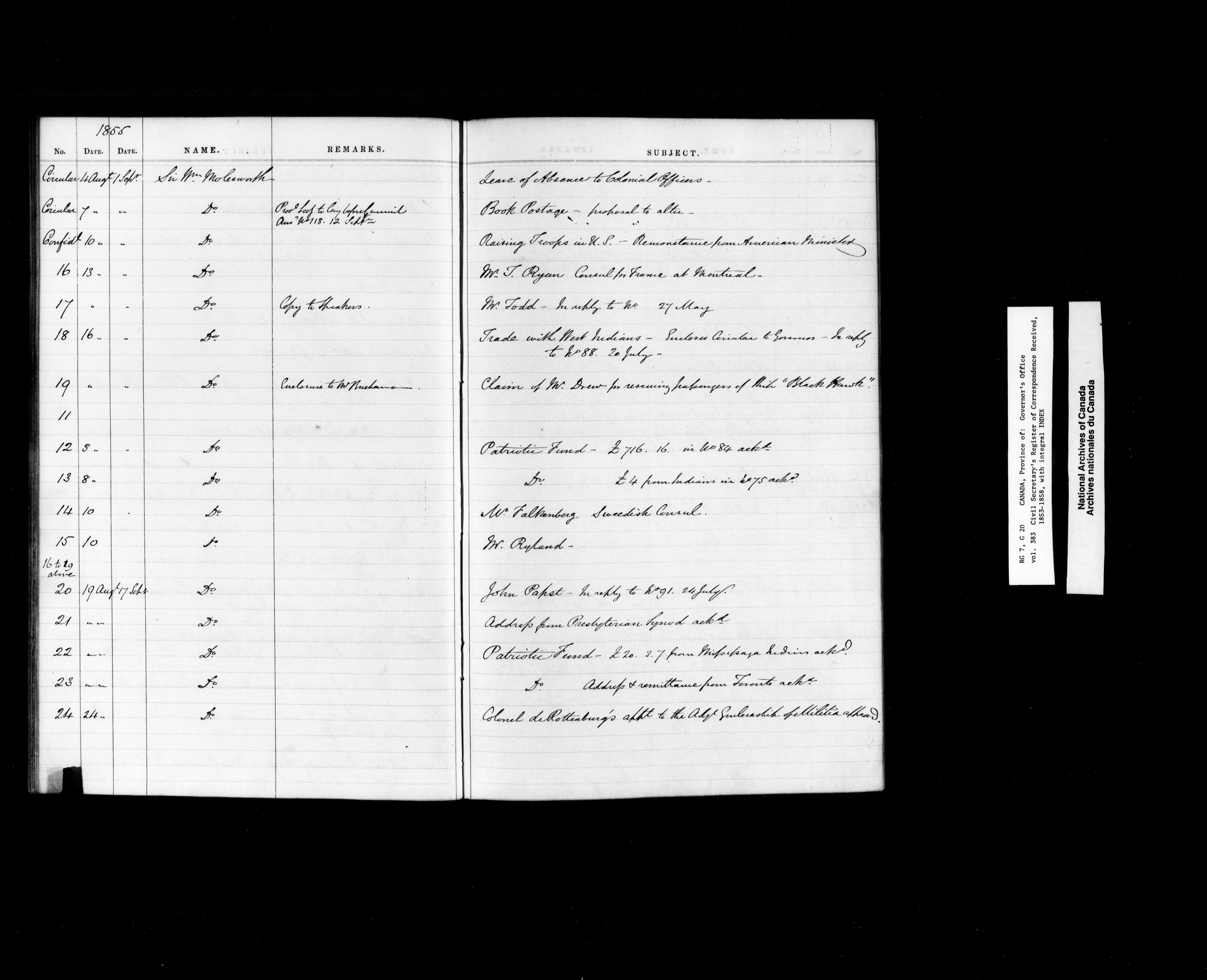Province Of Canada, Civil Secretary's Numbered Correspondence, 1841- 1867 [Province Of Canada] - 1968