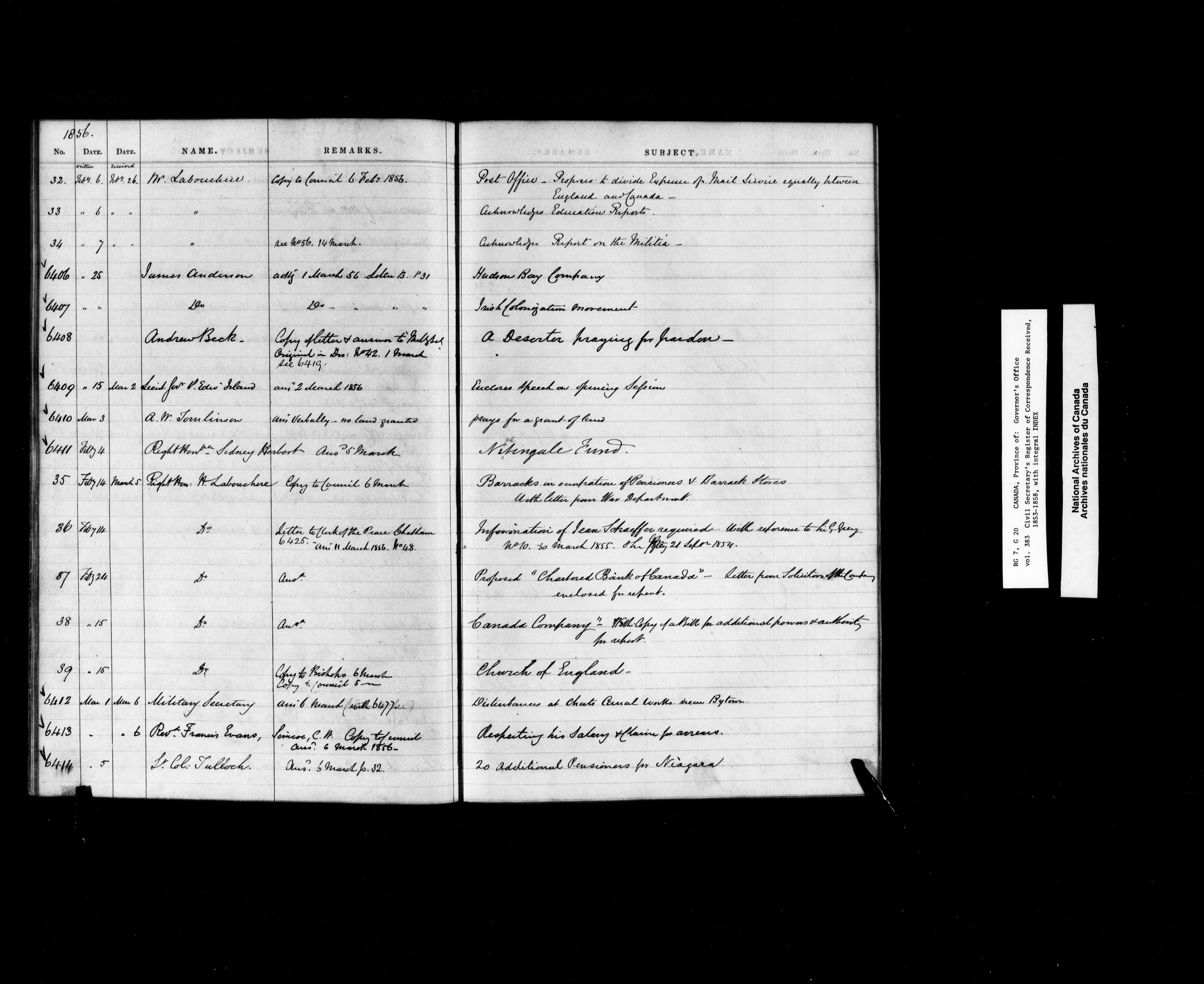 Province Of Canada, Civil Secretary's Numbered Correspondence, 1841- 1867 [Province Of Canada] - 1968