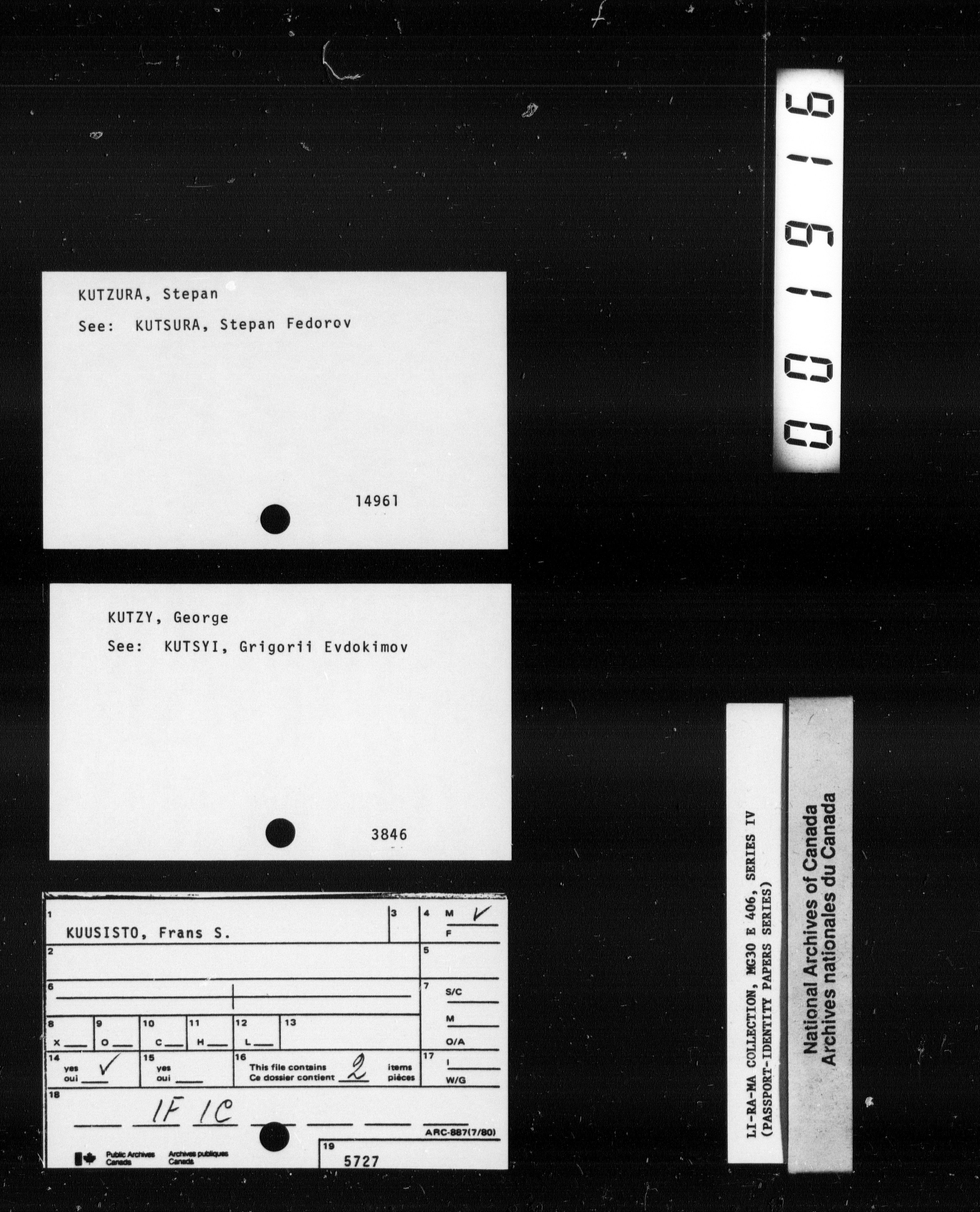 Li-Ra-Ma Collection (Passport-Identity Papers Series) Card Index - 1972
