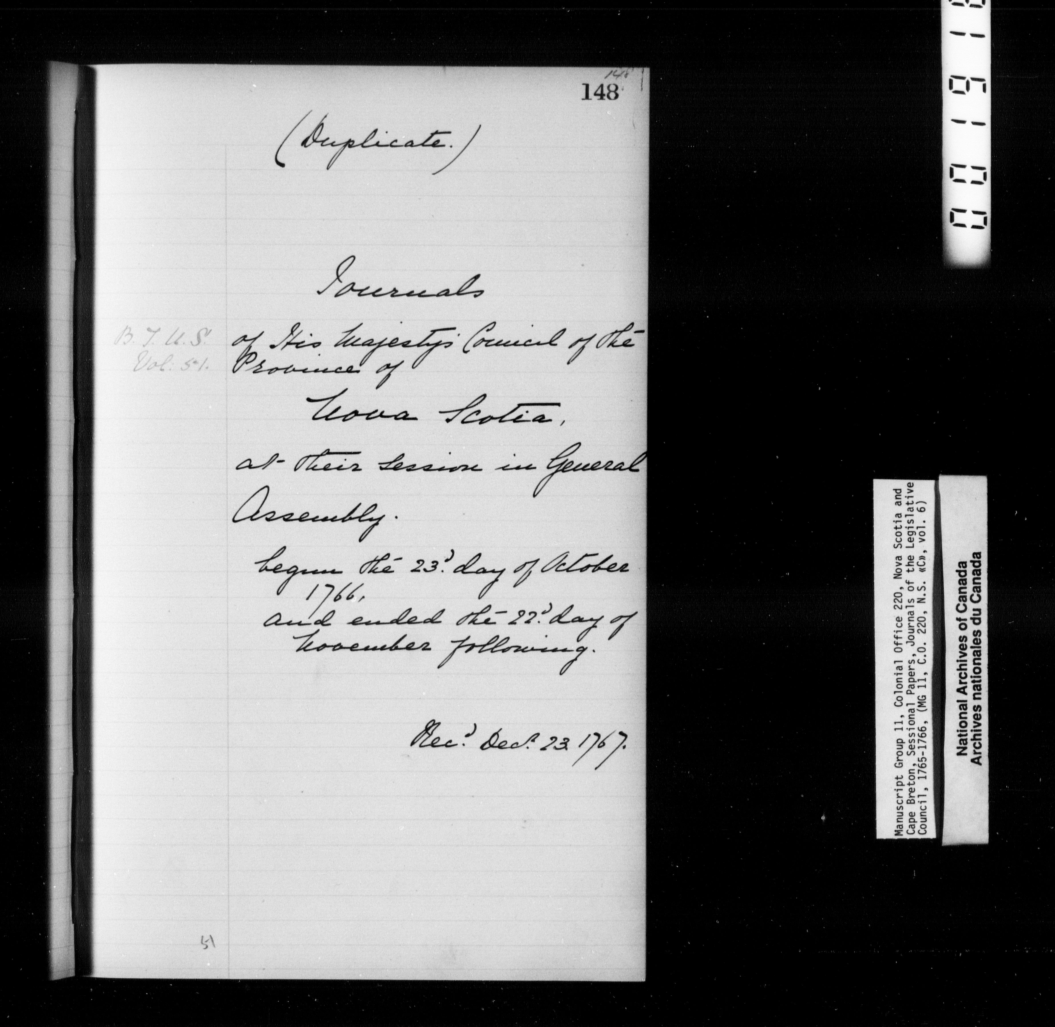Nova Scotia and Cape Breton, Sessional Papers (CO 220) - 1981