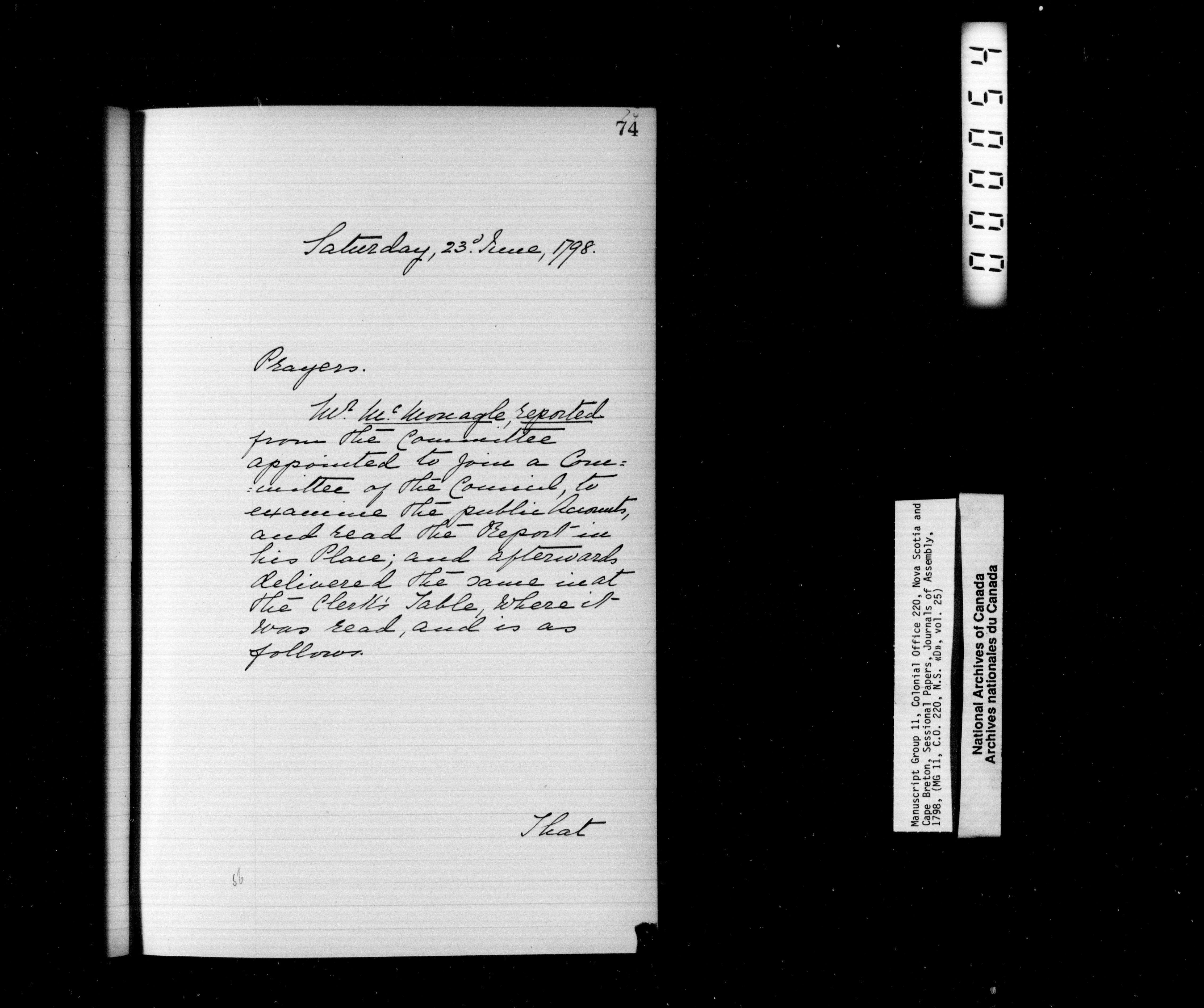 Nova Scotia and Cape Breton, Sessional Papers (CO 220) - 1987