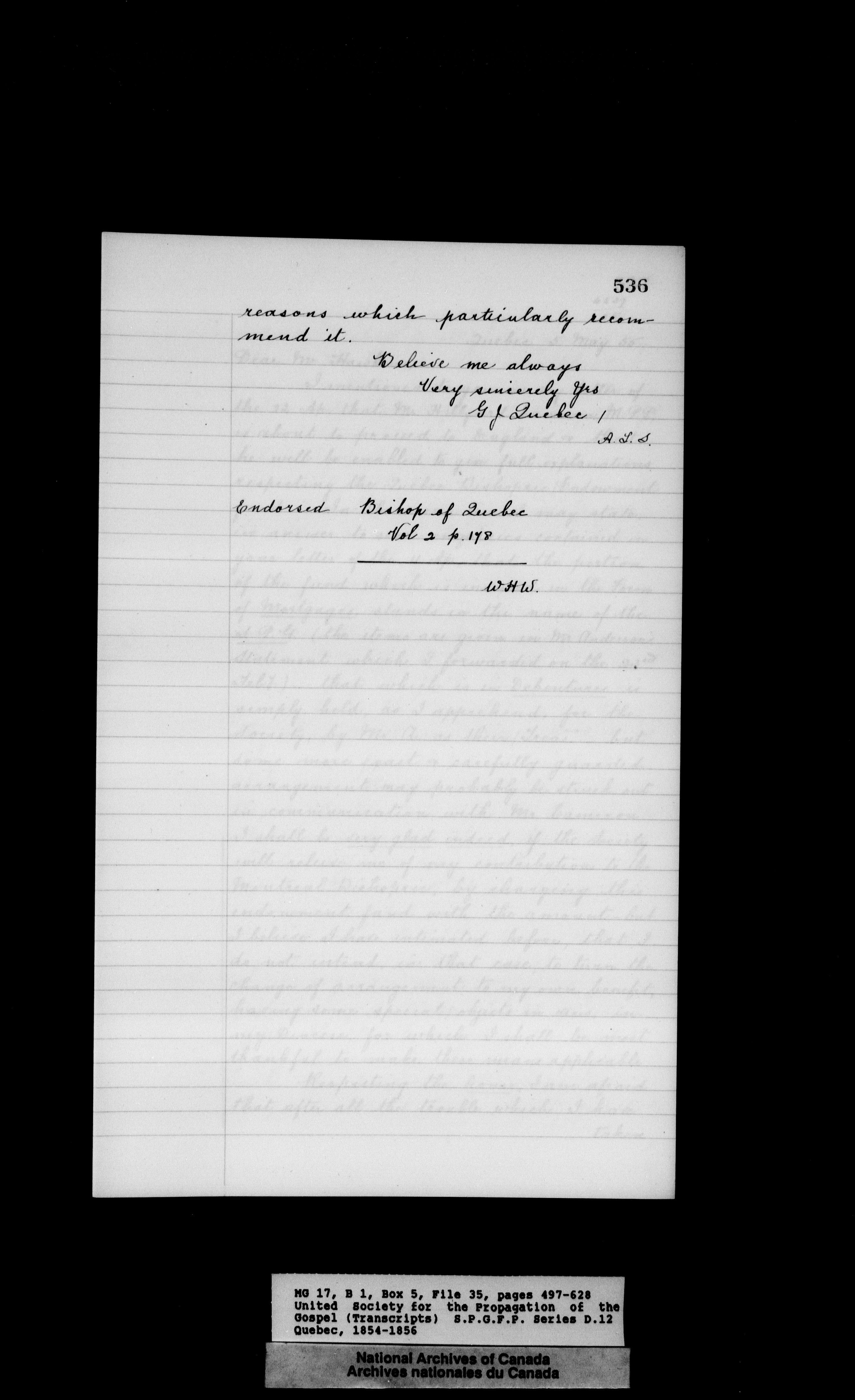 United Society For The Propagation Of The Gospel : Series D : Letters received from Dioceses in Canada - 1998