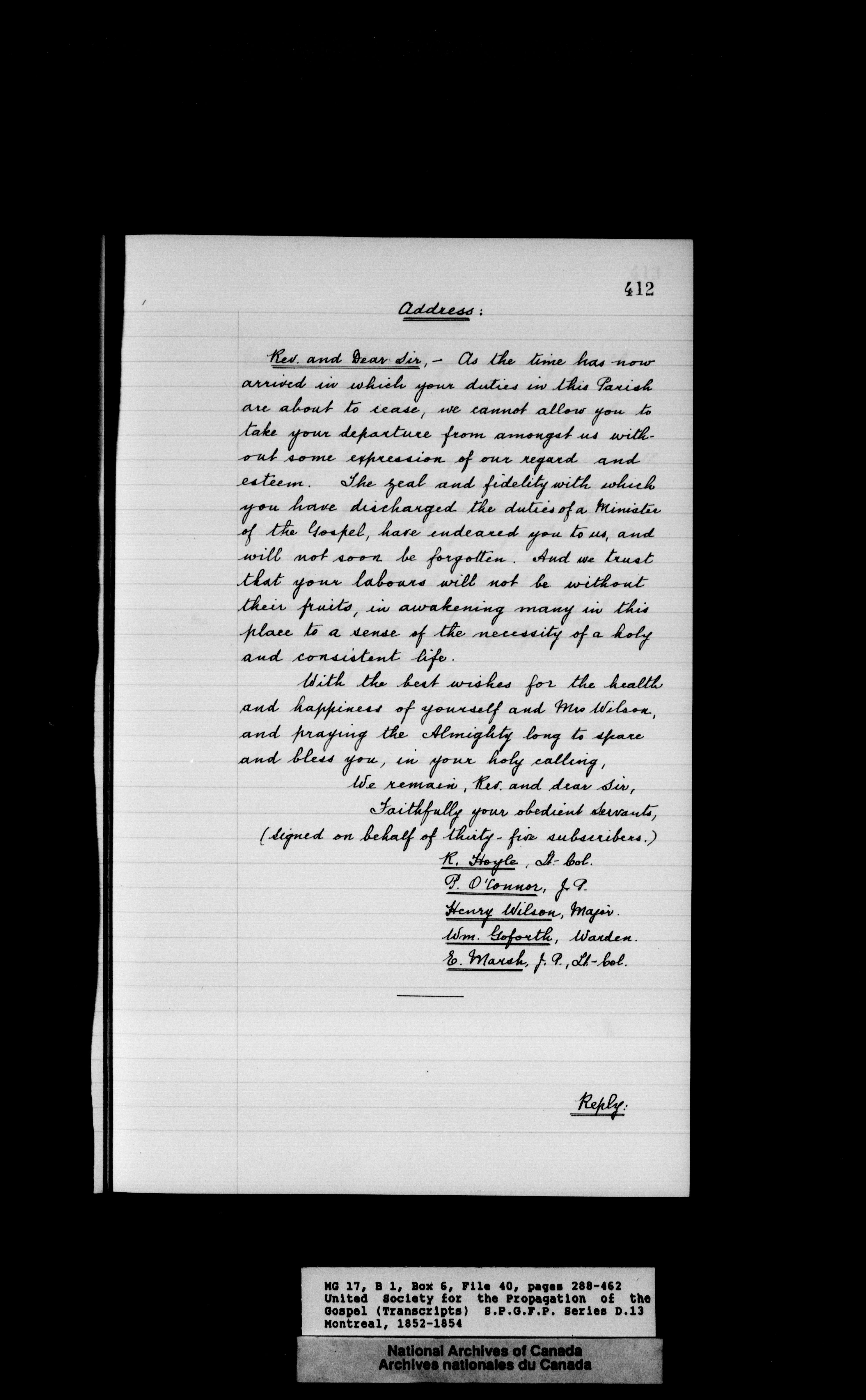 United Society For The Propagation Of The Gospel : Series D : Letters received from Dioceses in Canada - 1998