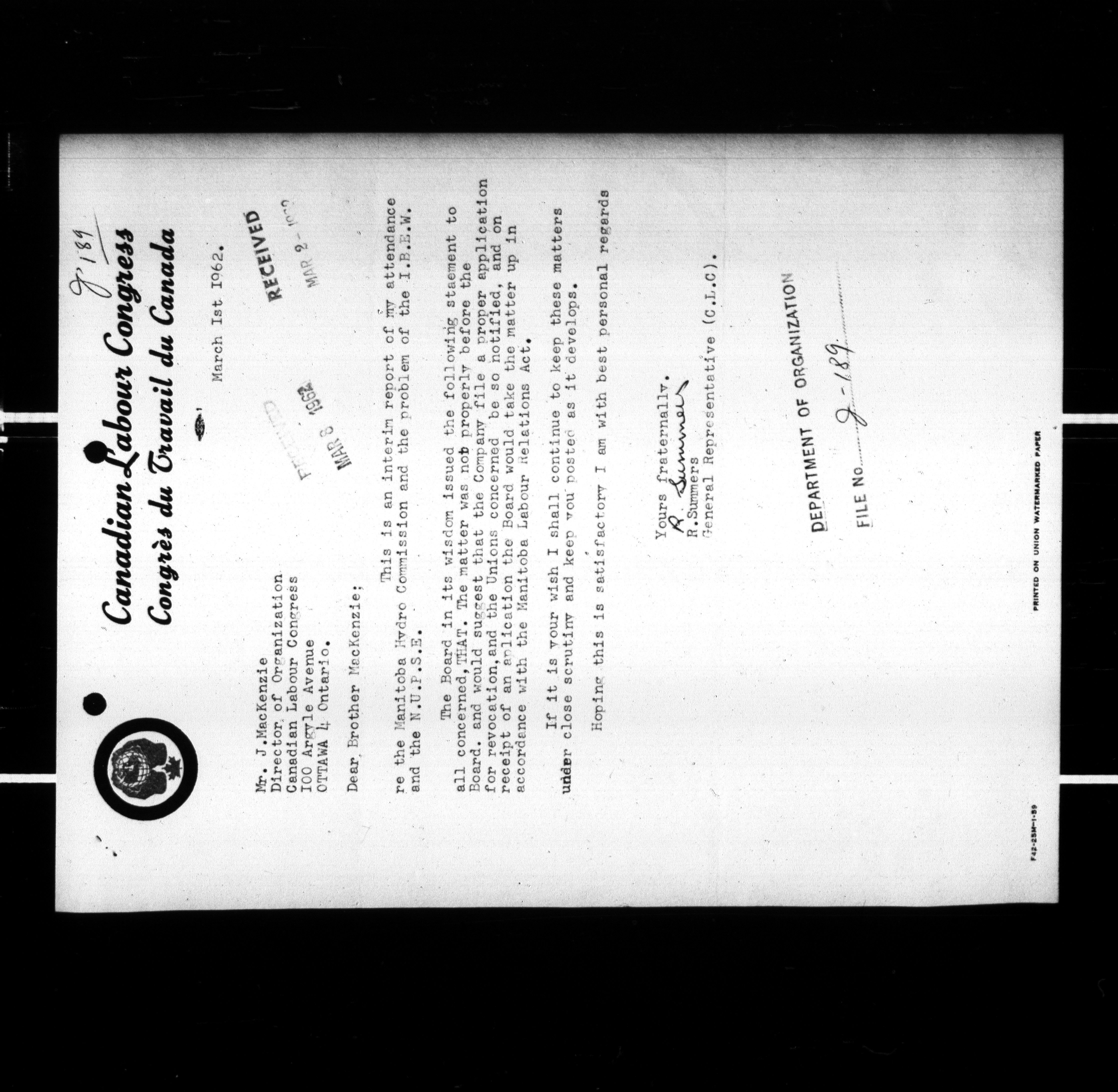 Canadian Labour Congress : Department of Organization - 20