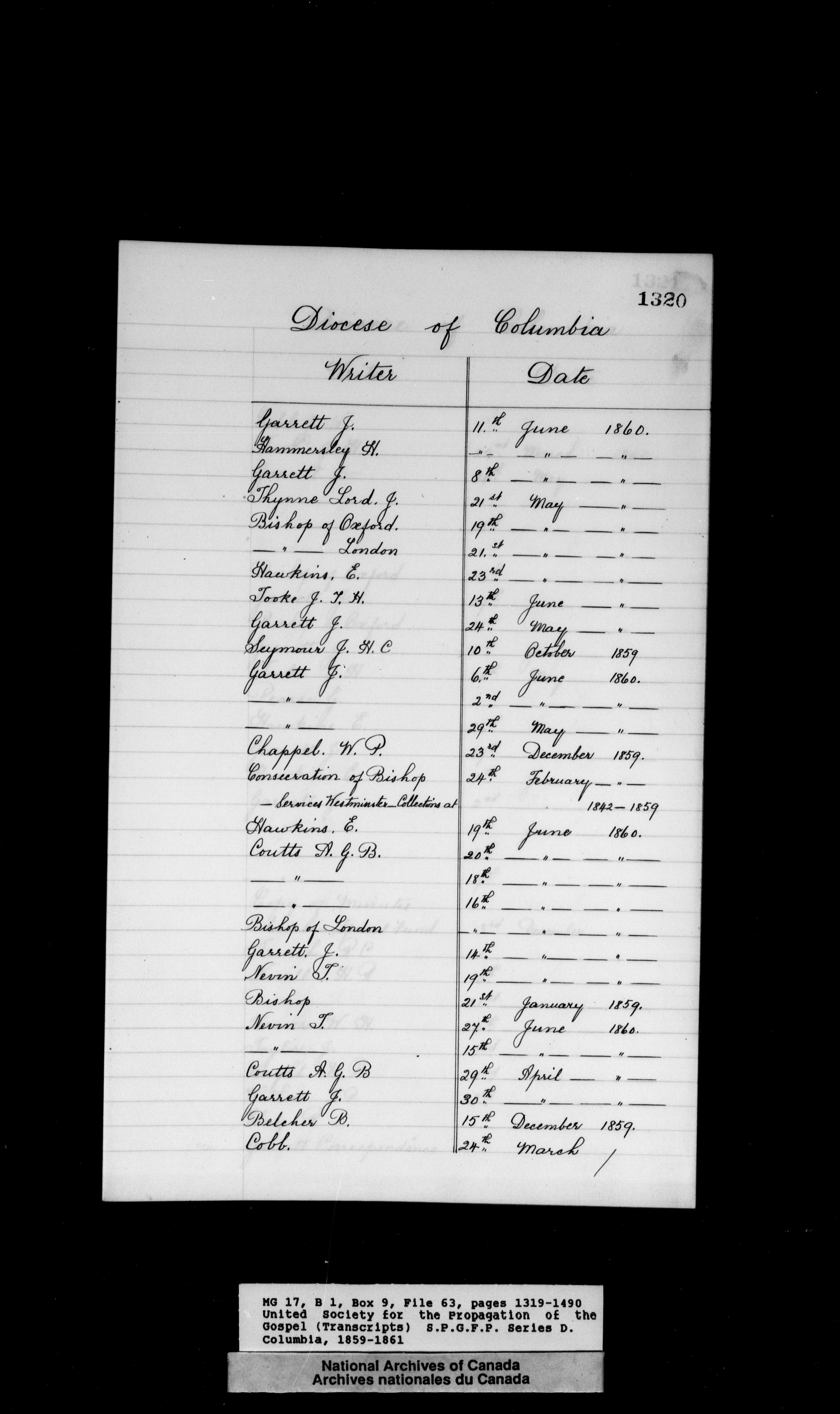 United Society For The Propagation Of The Gospel : Series D : Letters received from Dioceses in Canada - 2002