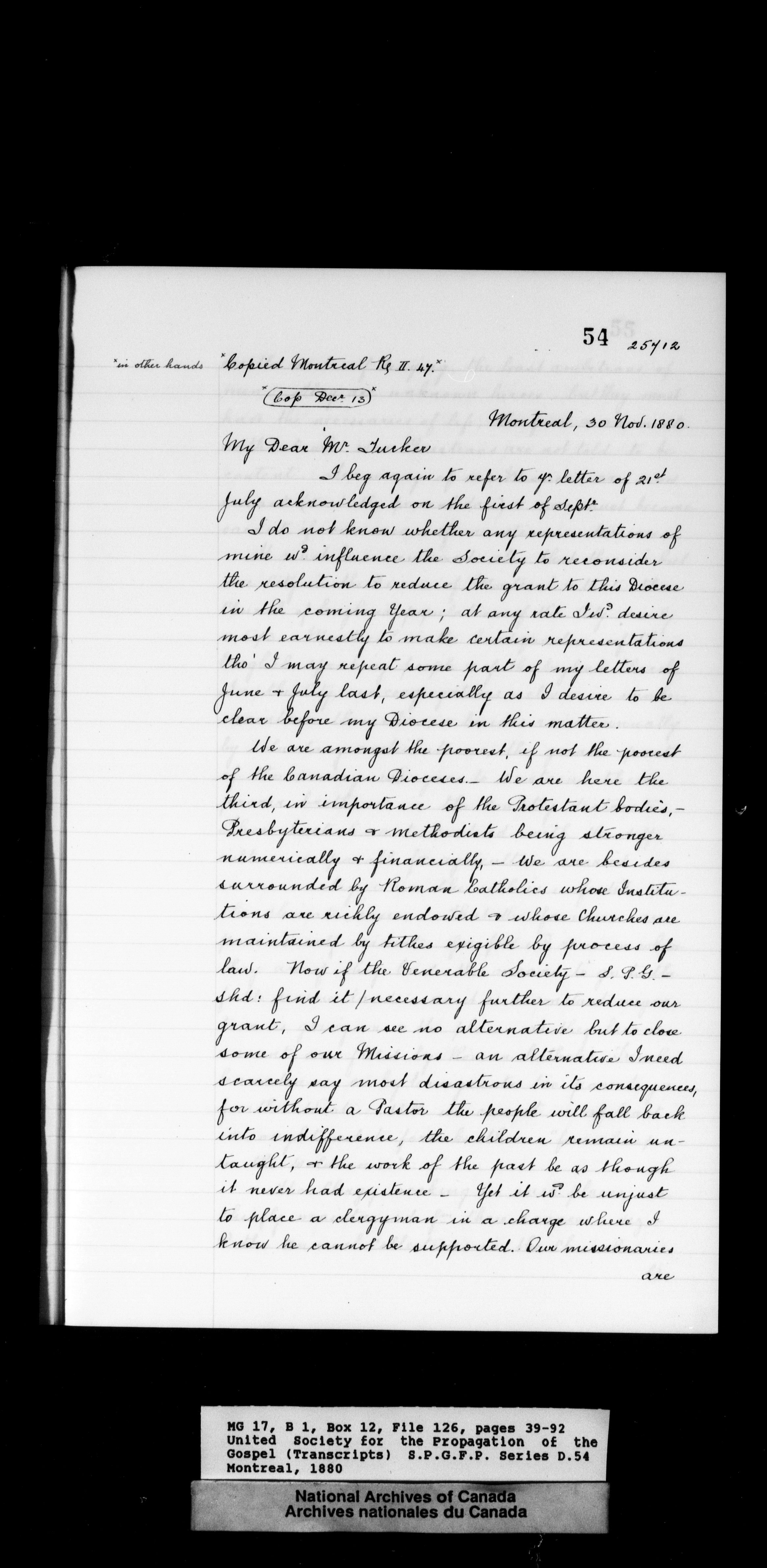 United Society For The Propagation Of The Gospel : Series D : Letters received from Dioceses in Canada - 2004