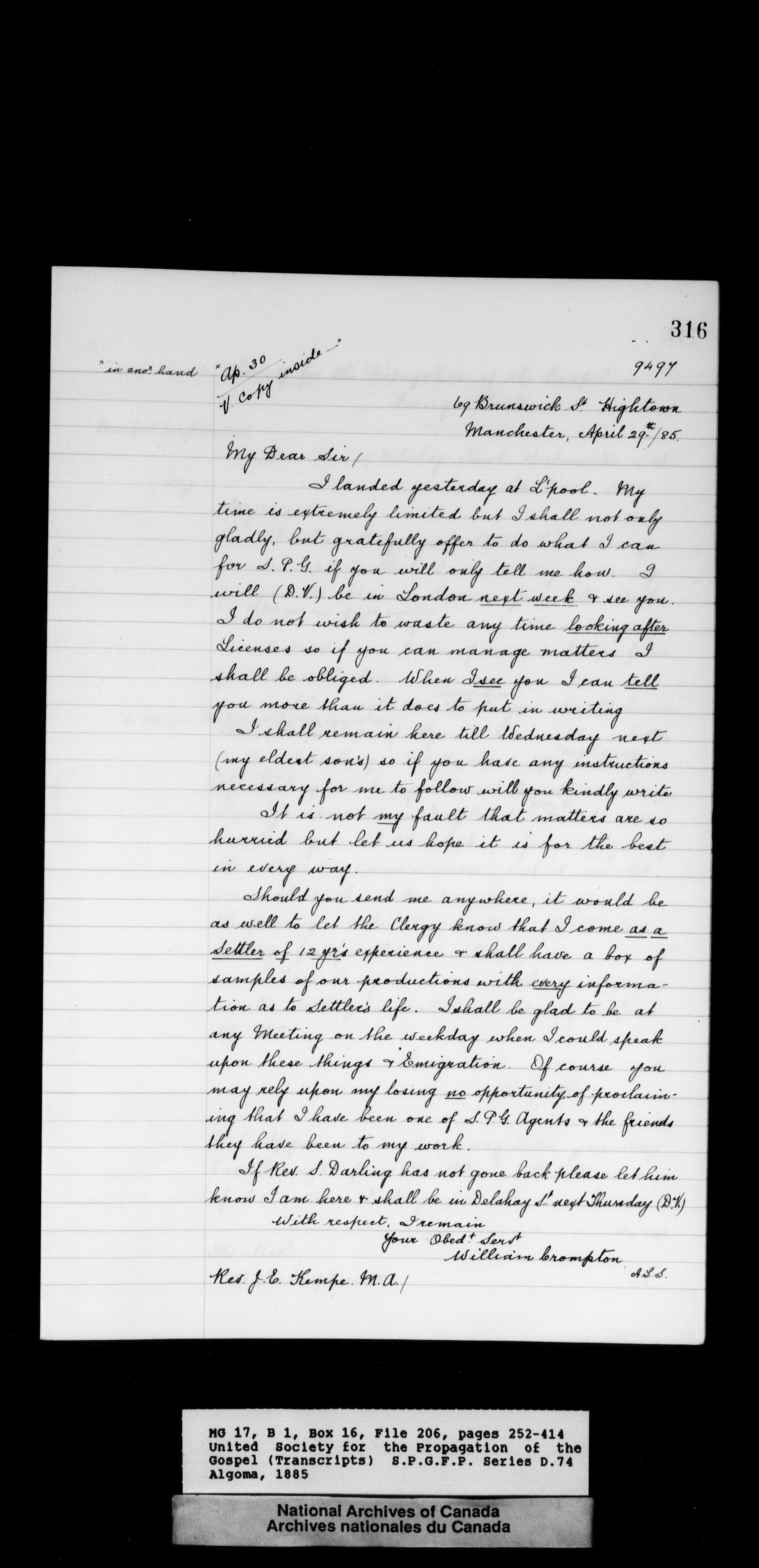United Society For The Propagation Of The Gospel : Series D : Letters received from Dioceses in Canada - 2007