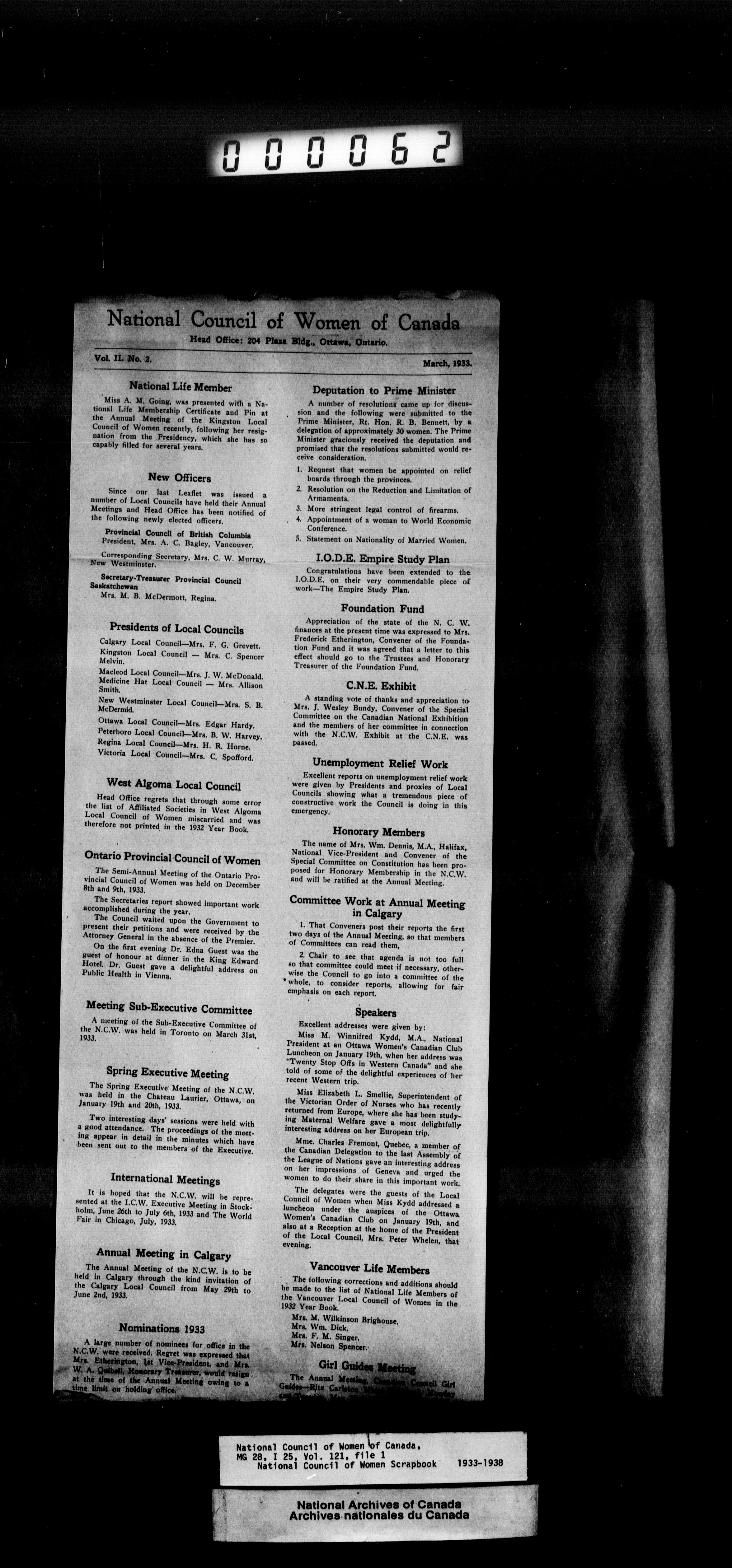 National Council Of Women : Reference material - 2031