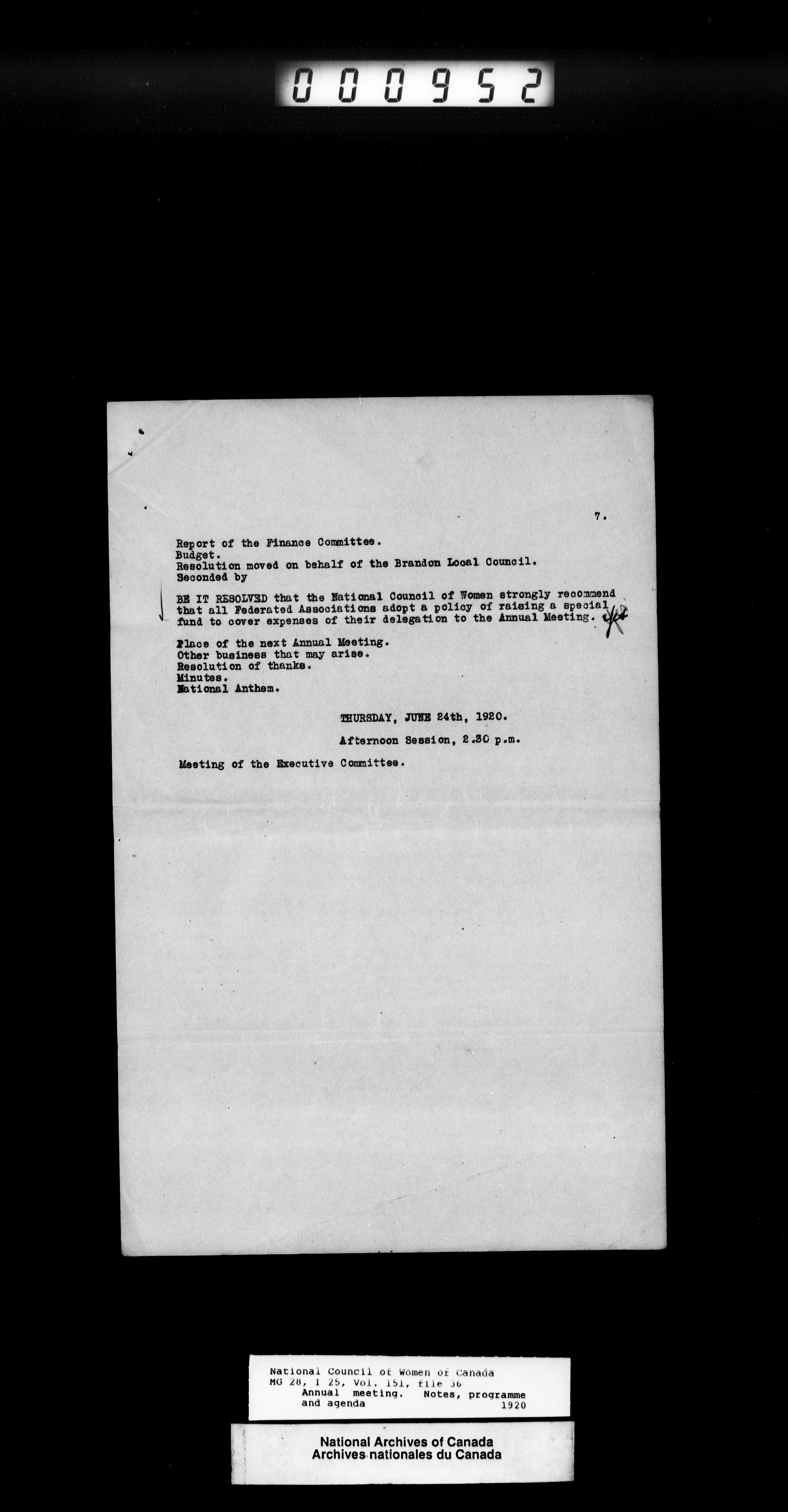 National Council of Women of Canada fonds : H-2033