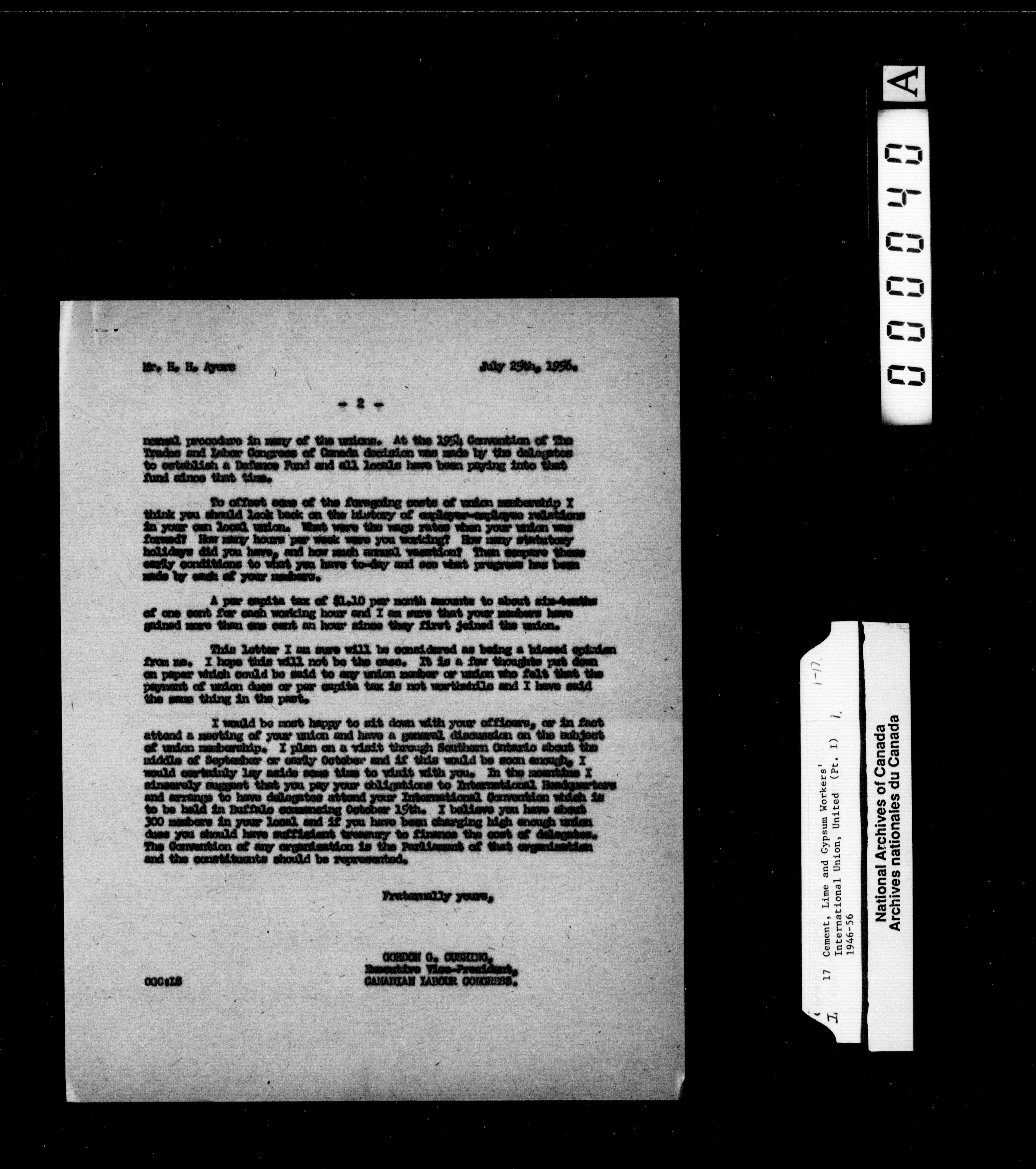 Trades and Labour Congress of Canada : International union correspondence - 2225