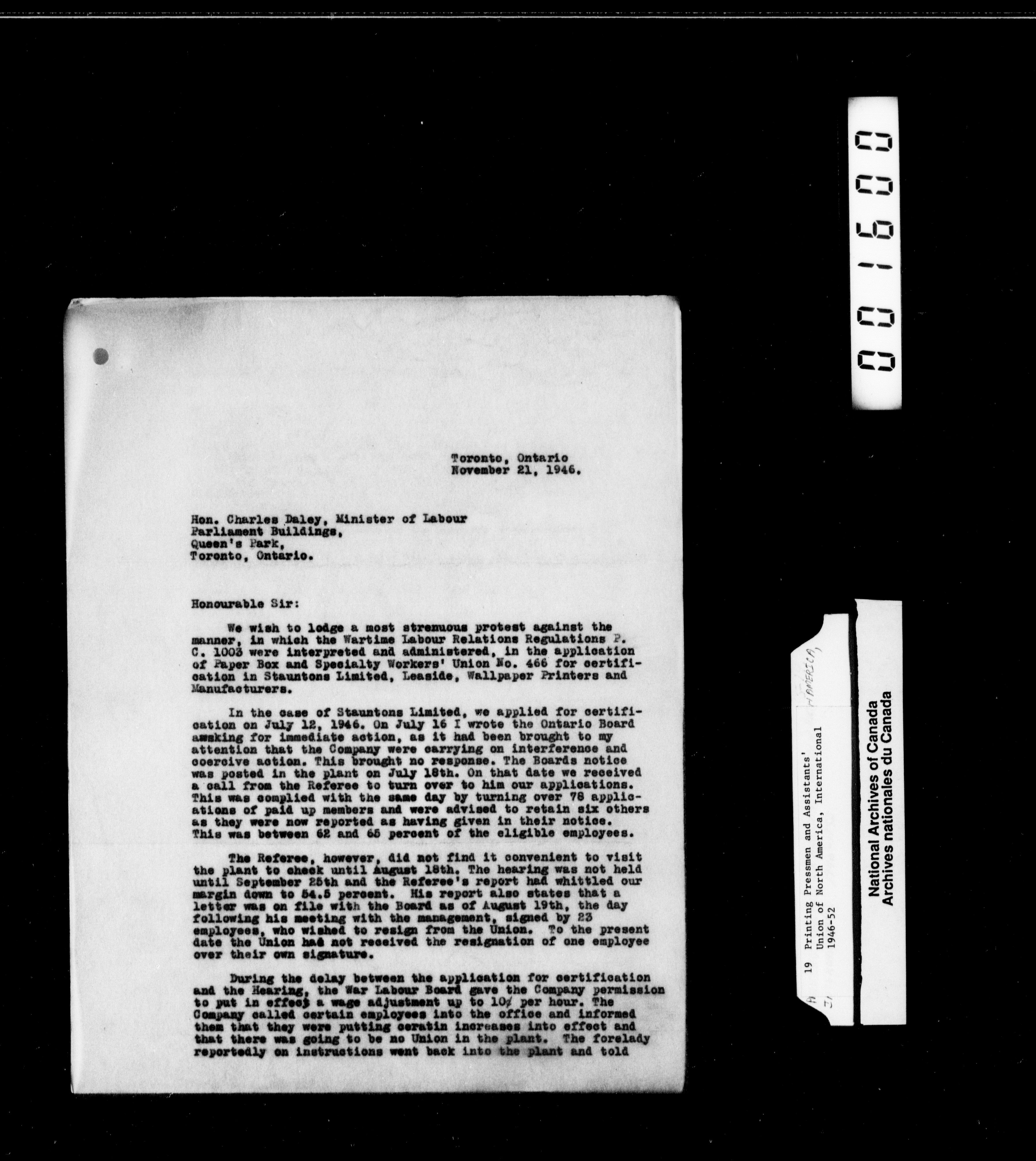 Trades and Labour Congress of Canada : International union correspondence - 2228