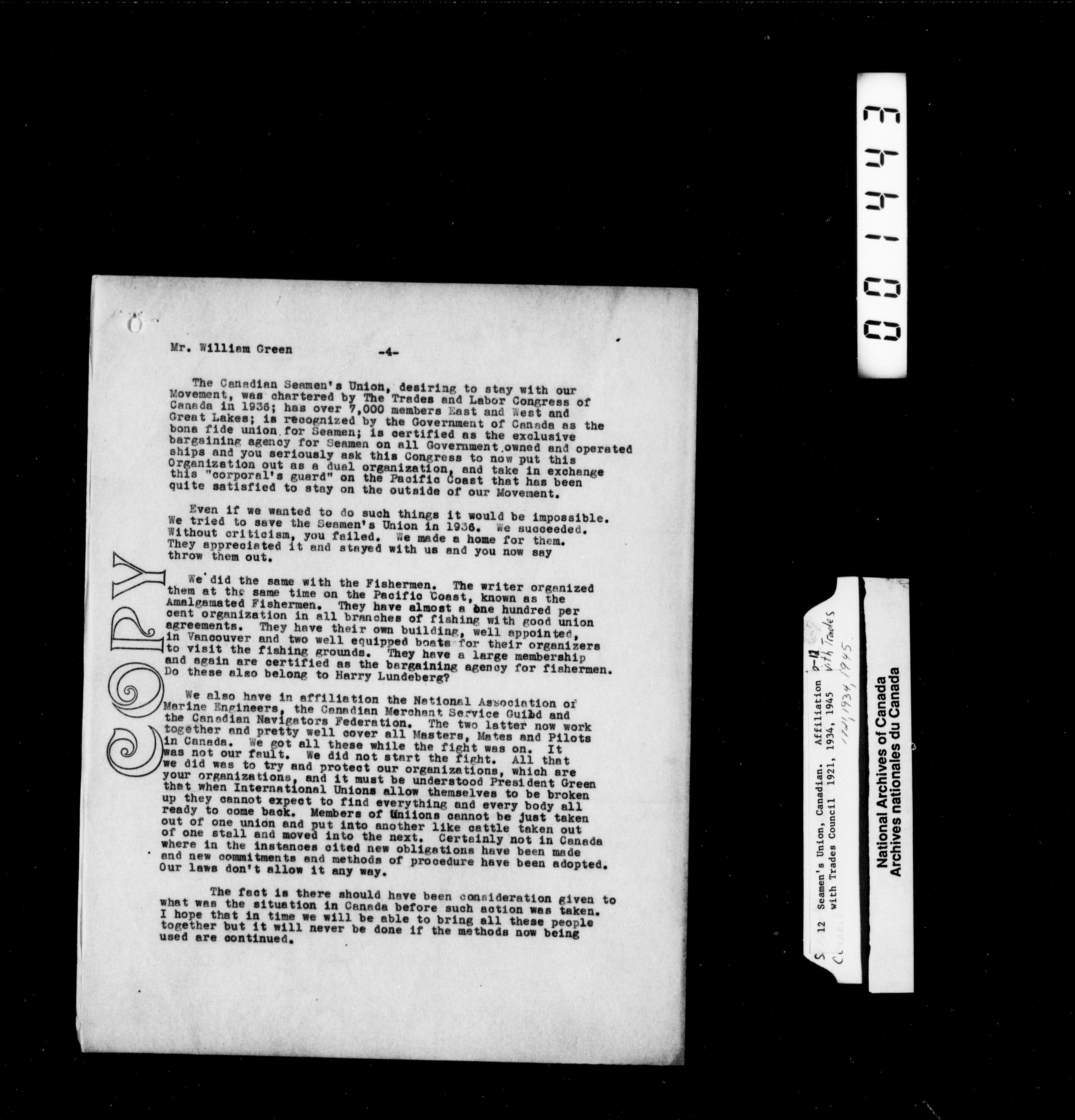 Trades and Labour Congress of Canada : International union correspondence - 2229