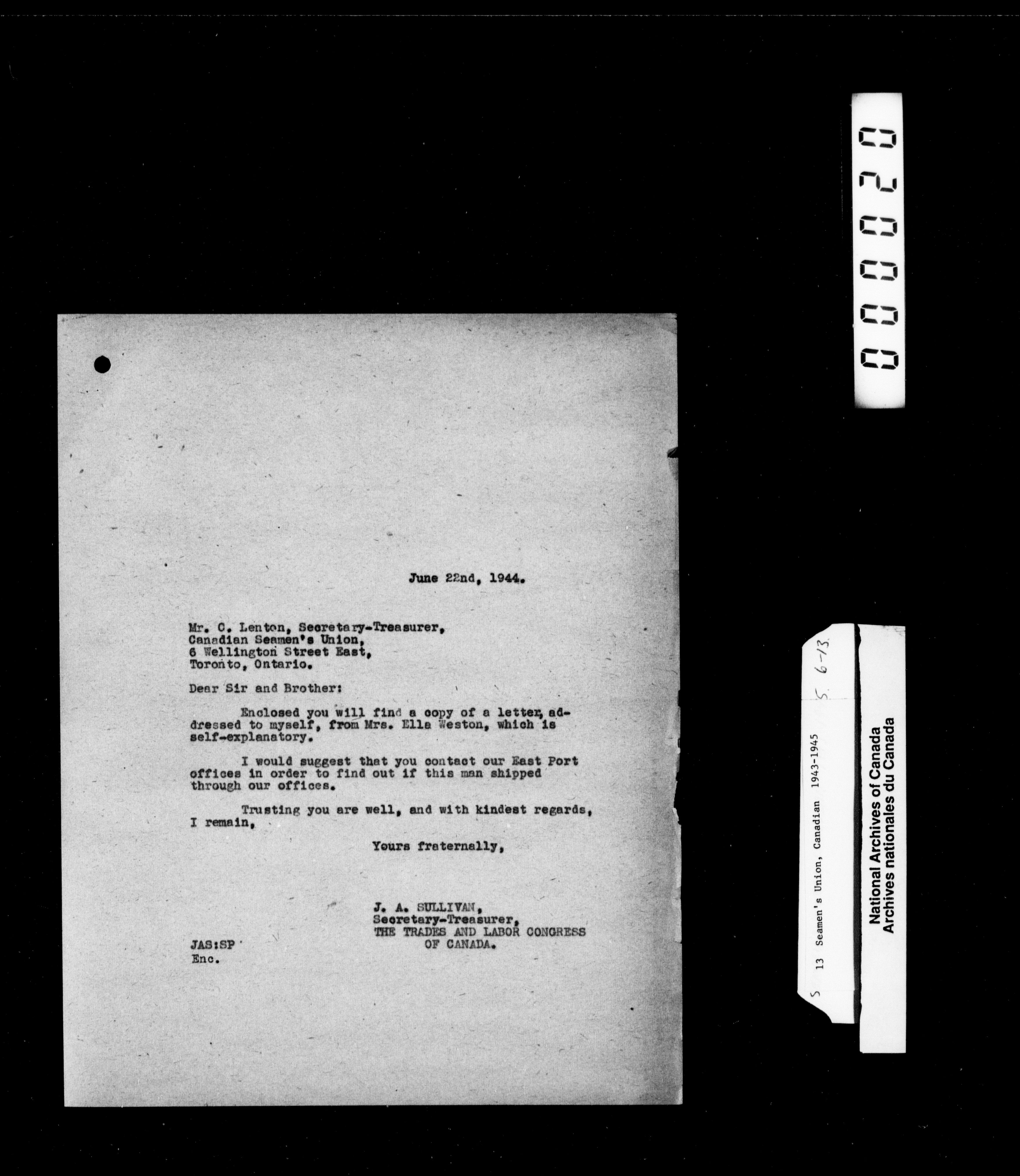 Trades and Labour Congress of Canada : International union correspondence - 2230