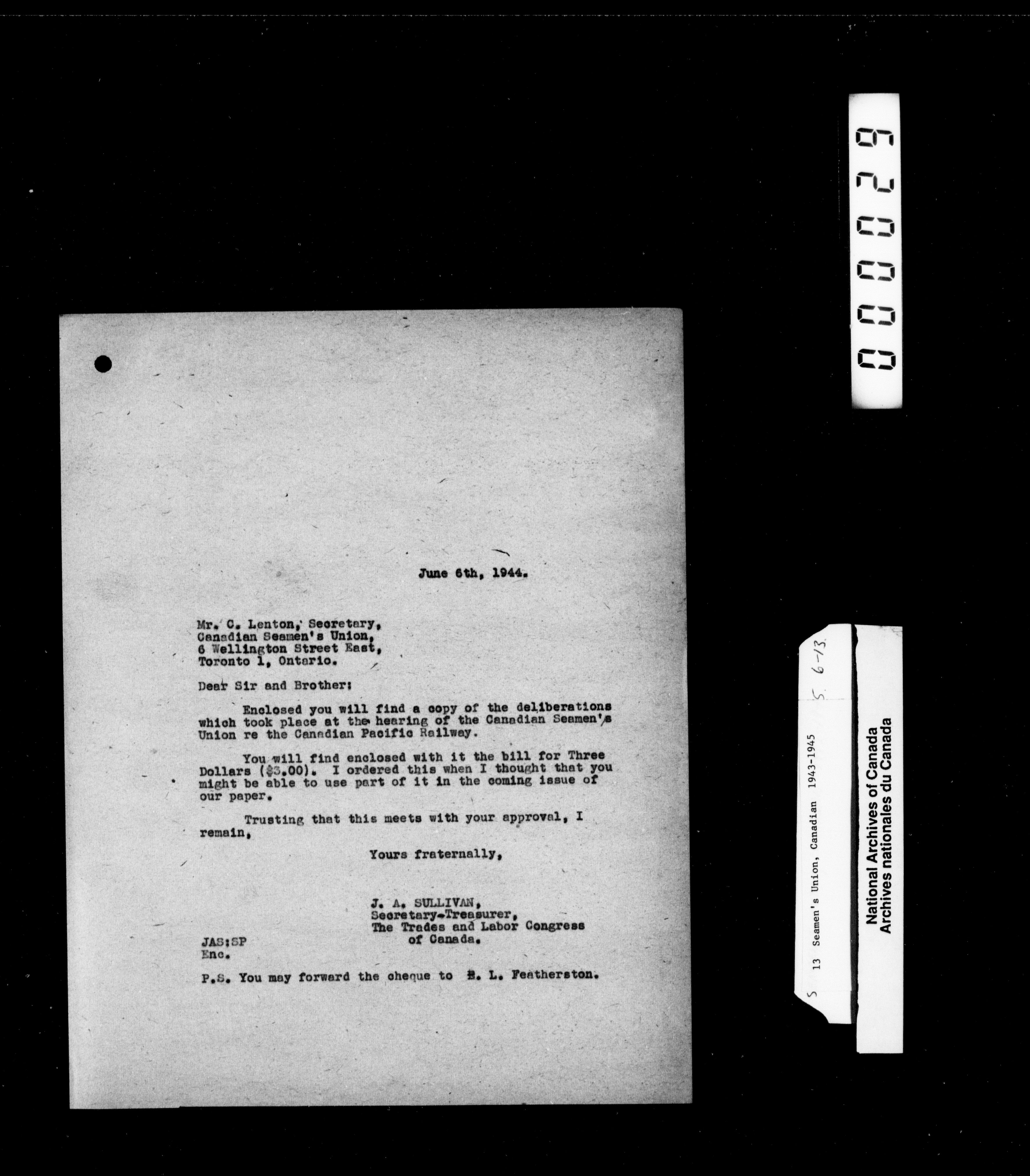 Trades and Labour Congress of Canada : International union correspondence - 2230