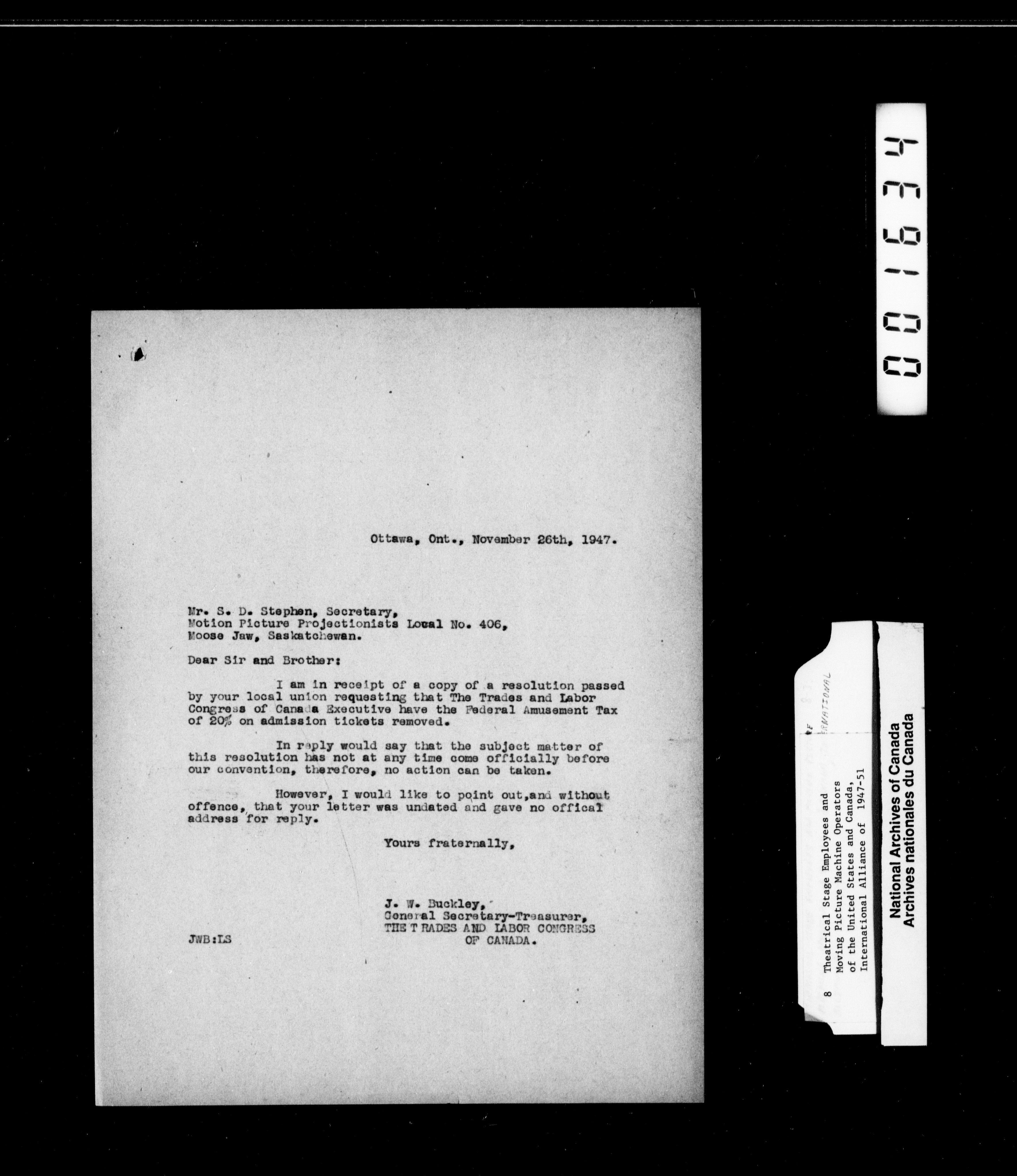 Trades and Labour Congress of Canada : International union correspondence - 2231