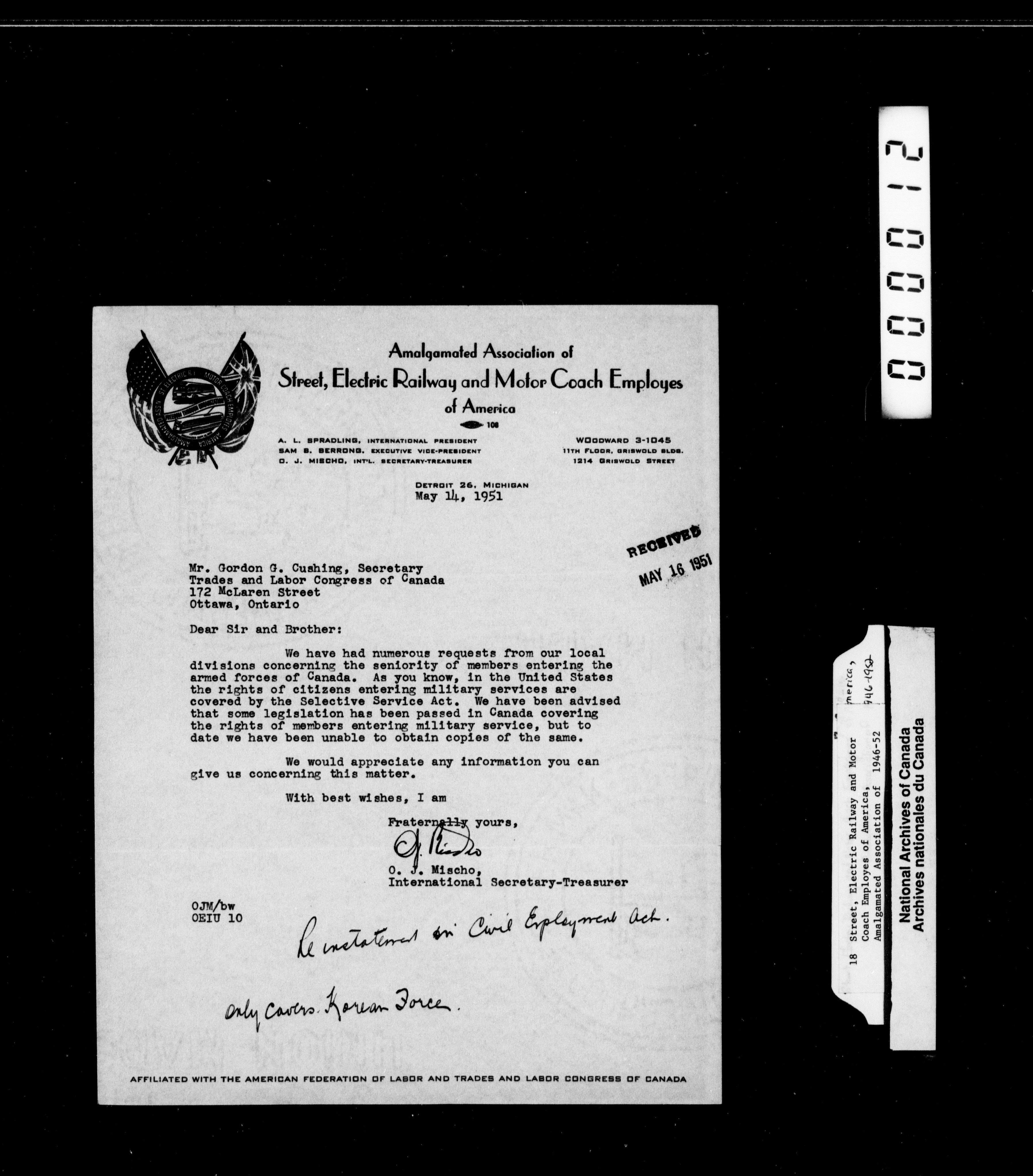 Trades and Labour Congress of Canada : International union correspondence - 2231