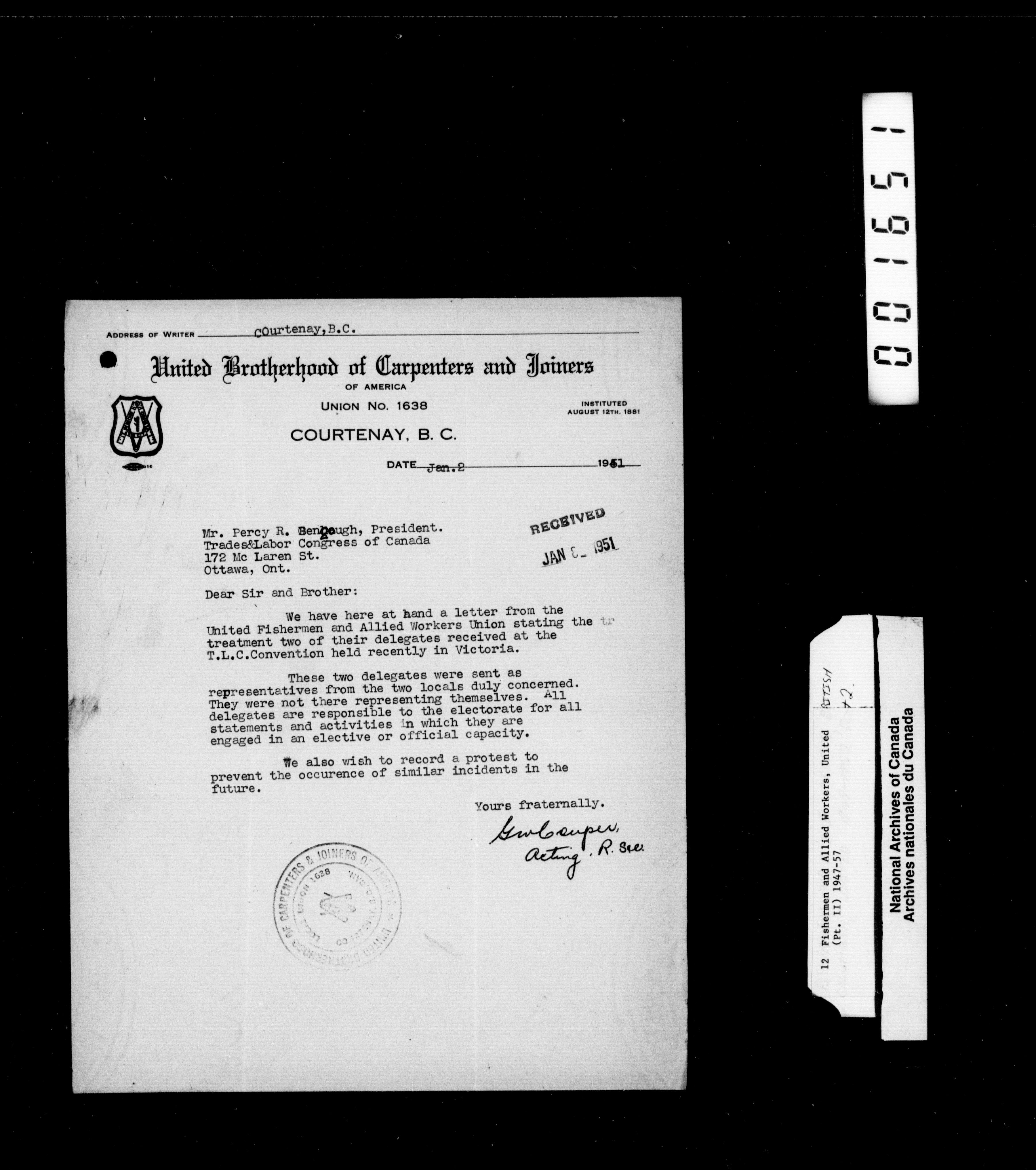Trades and Labour Congress of Canada : International union correspondence - 2232