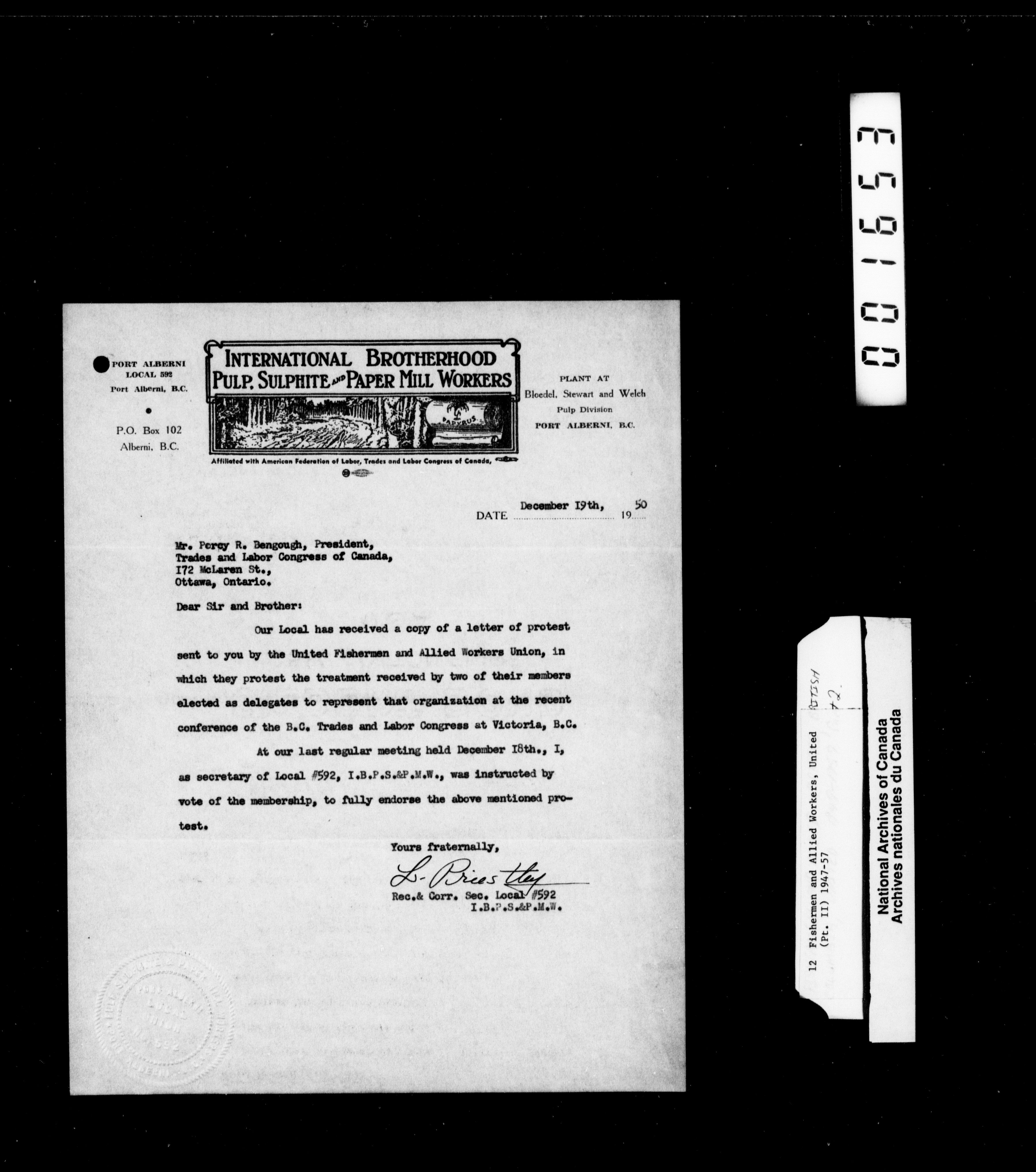 Trades and Labour Congress of Canada : International union correspondence - 2232